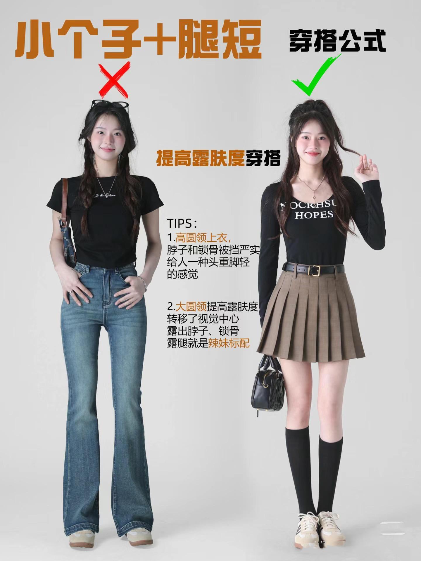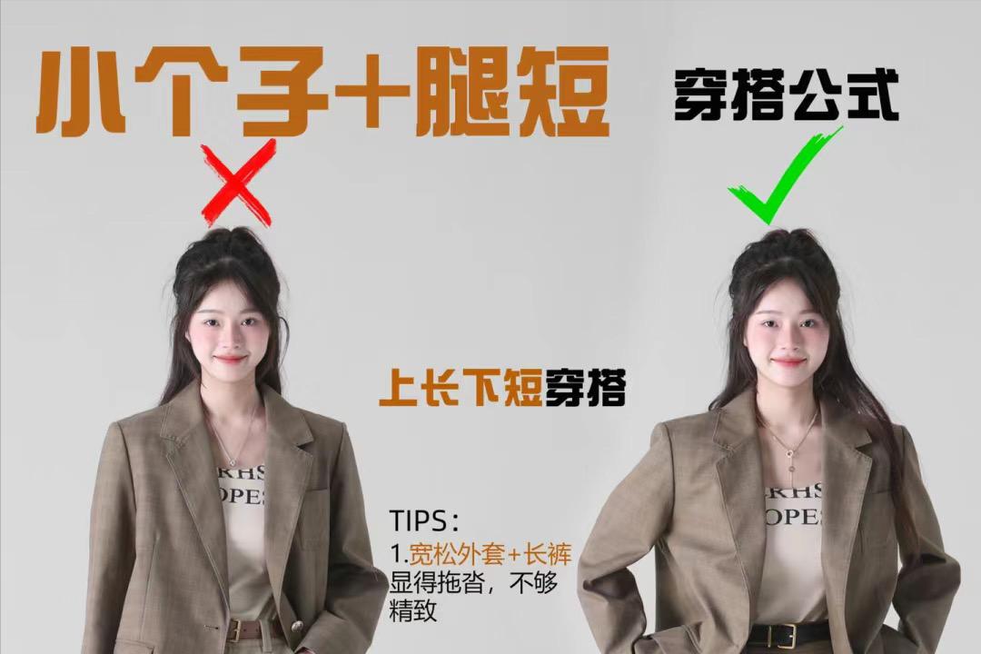 個子矮+腿短的女生,就是很明顯的海拔不夠、比例不足。穿衣搭配也可以通過色彩來取勝,基礎色的穿搭,很容易顯得呆板土氣。