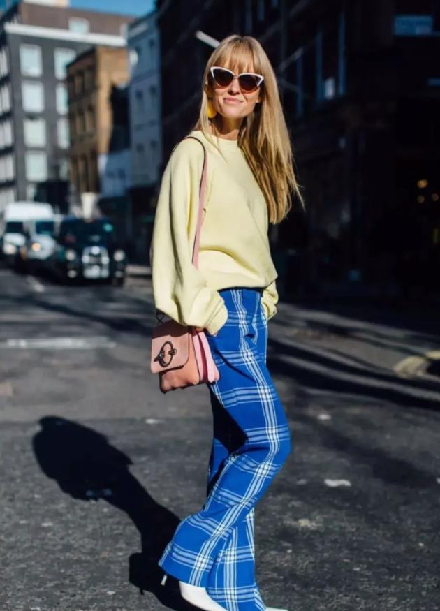 圓領衛衣+格紋闊腿褲,整套遵循了一簡一繁的搭配,這樣的搭配輕鬆打造出時髦氣質感,也展現出女性的颯爽和自信,再搭配一雙白色高跟鞋,就能展現出簡約卻不失華麗感,當然了,整體的顯瘦效果也是非常不錯的。
