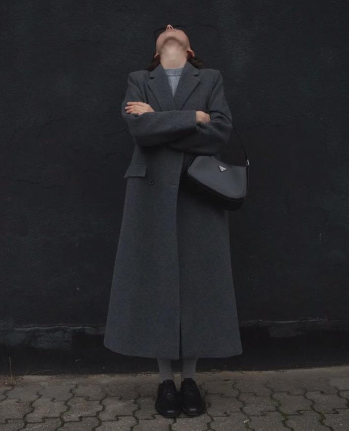大衣在秋冬可是衣櫥最常見的外套之一,像灰色雙面大衣,也深受衆多女性的追捧,內搭灰色打底,同色系的搭配,真的很省心,也不容易出錯,可以打造出女人的自信,也塑造出氣質感,選擇一雙黑色樂福鞋,輕鬆將女性的魅力展現出來,不僅隨性灑脫,還能呈現出颯爽利落。