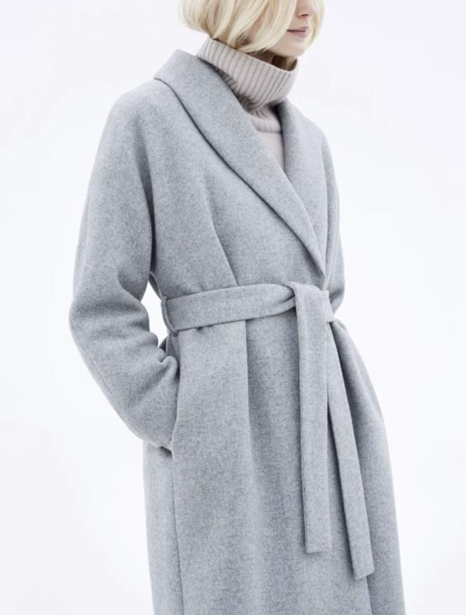 如果覺得自己駕馭不會深灰色大衣,可以選擇淺一點的灰色雙面大衣,內搭配一件堆堆領針織衫,可以給穿着者營造出一種高級和品味,選擇繫腰帶的款式,不僅修飾身材,還很保暖,將女人味完美詮釋出來,更讓你整個着裝顯得利落高級。