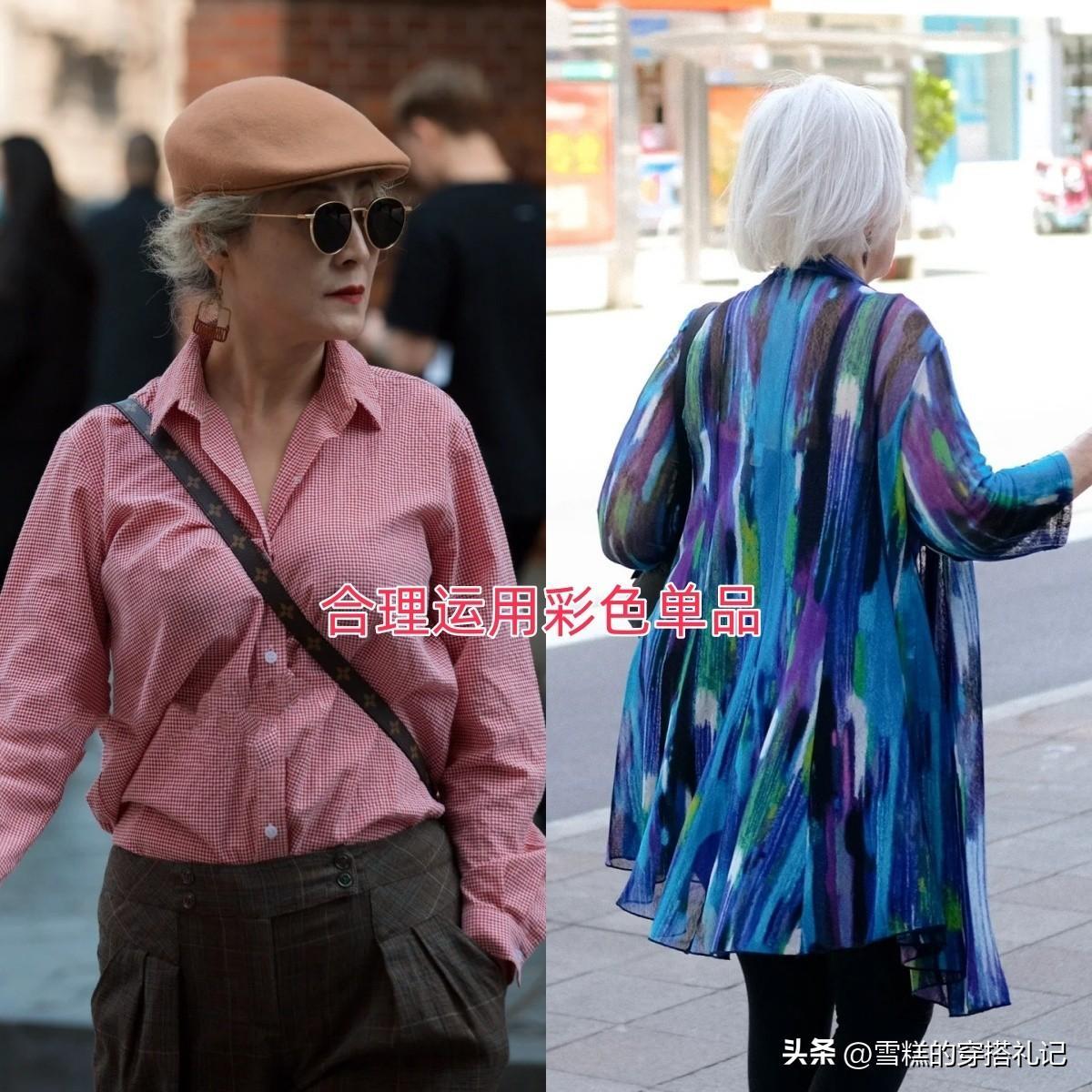 主要展現優雅和高級感的造型,服裝款式的選擇往往大過於各色技巧的疊加。加之年紀大女人服裝本身的選擇範圍就受到了很大限制,大家選款的時候就更會注意本身的質感高低。