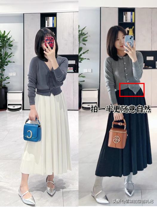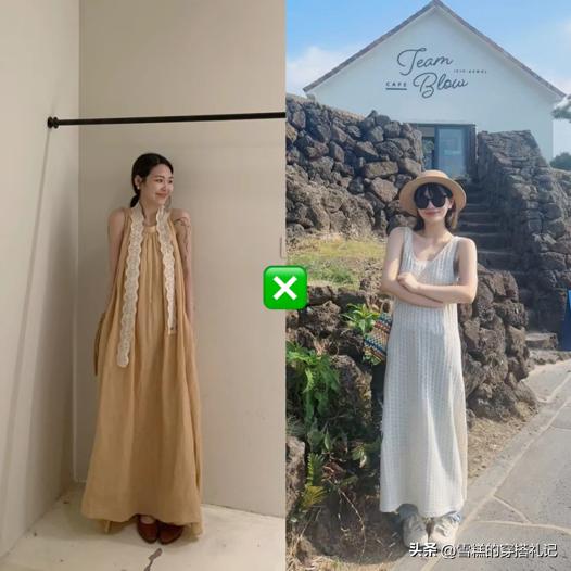 長裙也是當下很多女生的選擇款式,因爲它穿起來比較方便,又能遮蓋大部分的身材問題。但是裙子的長度過長對於矮個子女生來說並不友好,會容易營造出無腿女士的感覺,像沒過腳踝位置的長裙,不要輕易碰,高個子穿有着1米8的效果,矮個子穿會拖地,整個人不利落,顯得沒有精神氣。
