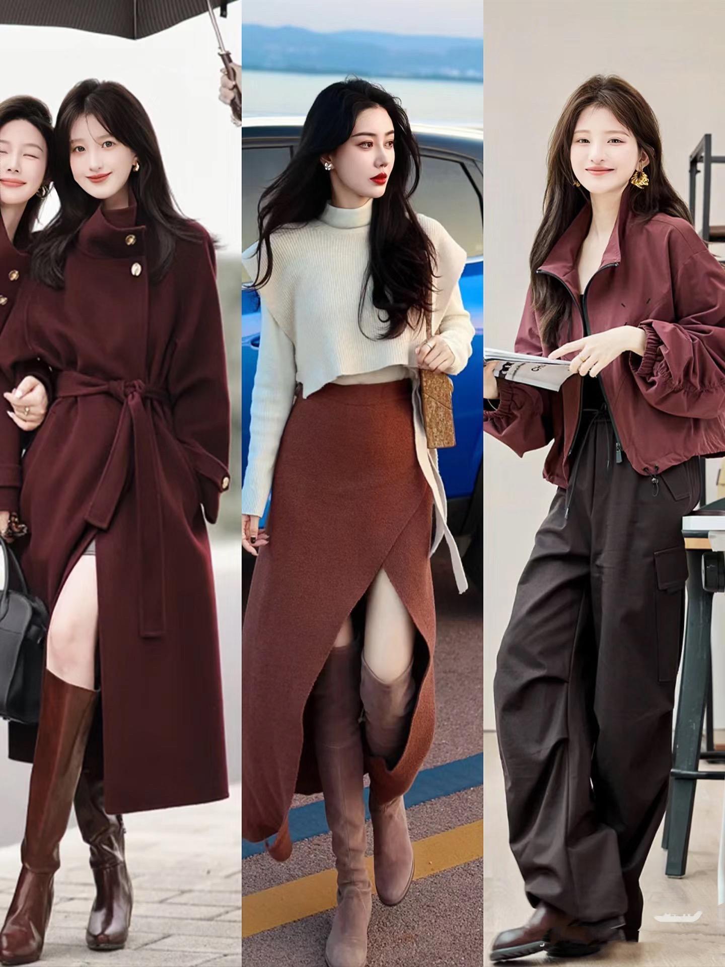 安可拉紅的大衣、或者開衩半身裙、夾克外套都特別的實用。安可拉紅的大衣,配上一雙同色系長靴,時髦有範、真的好高級。