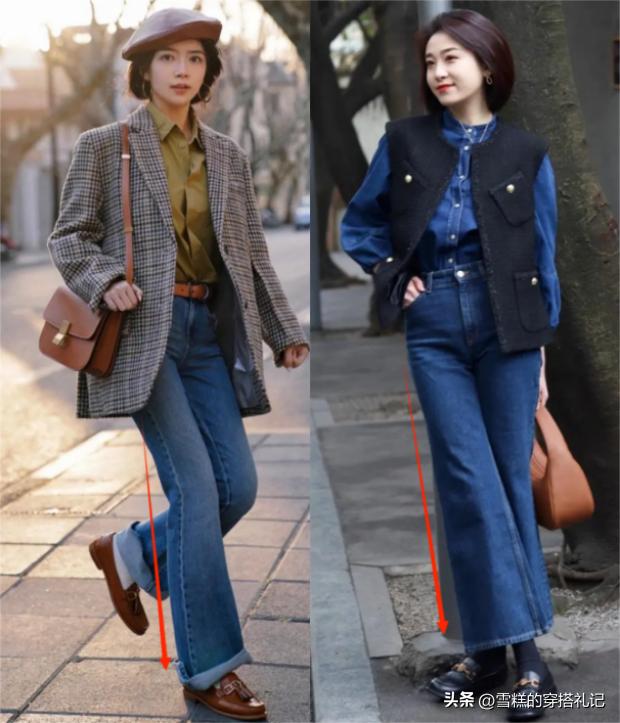 褲子與平底鞋的最佳組合在於強調褲子的設計,而鞋子則起着輔助美化的作用。以寬鬆、輕盈的褲款搭配簡潔小巧的平底鞋爲例,兩者之間的強烈對比在視覺效果上既能夠顯著提升身高,又能有效地掩蓋身形不足之處,展現出更加修長、纖細的身材形象。