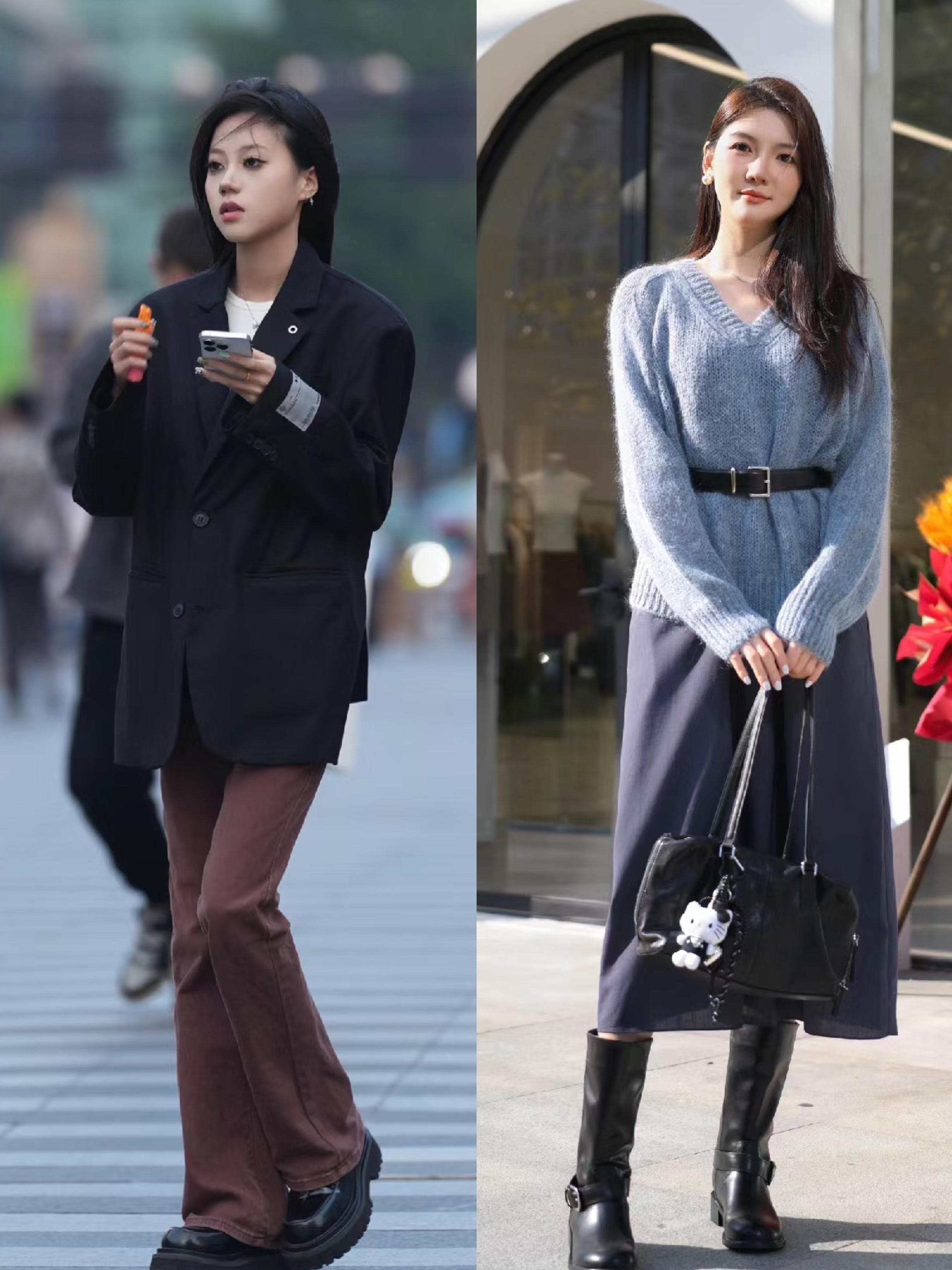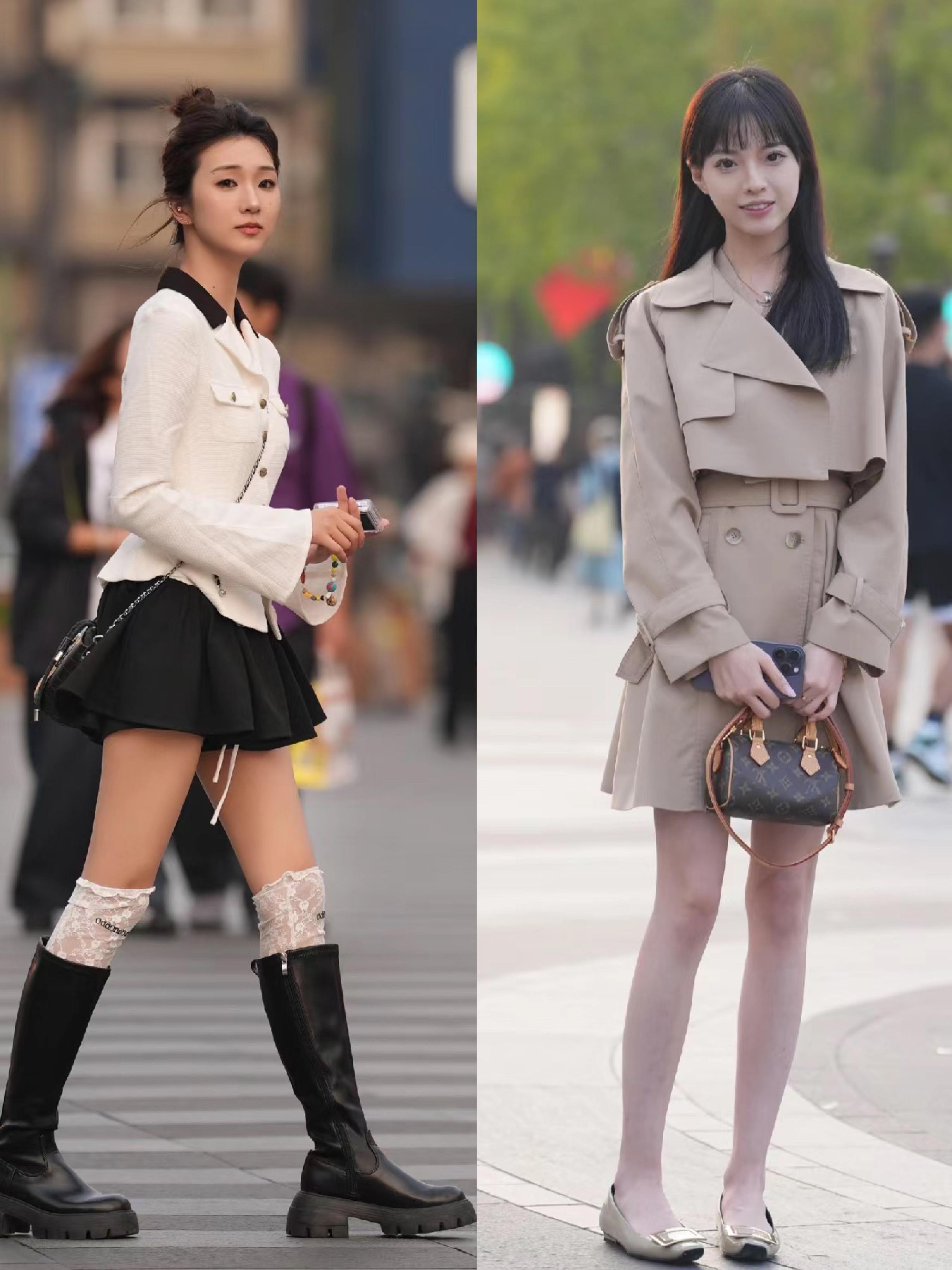 杭州的天氣,已經有些涼了,但是擋不住小姐姐們愛美的心呀。下衣失蹤的搭配、依然很流行。