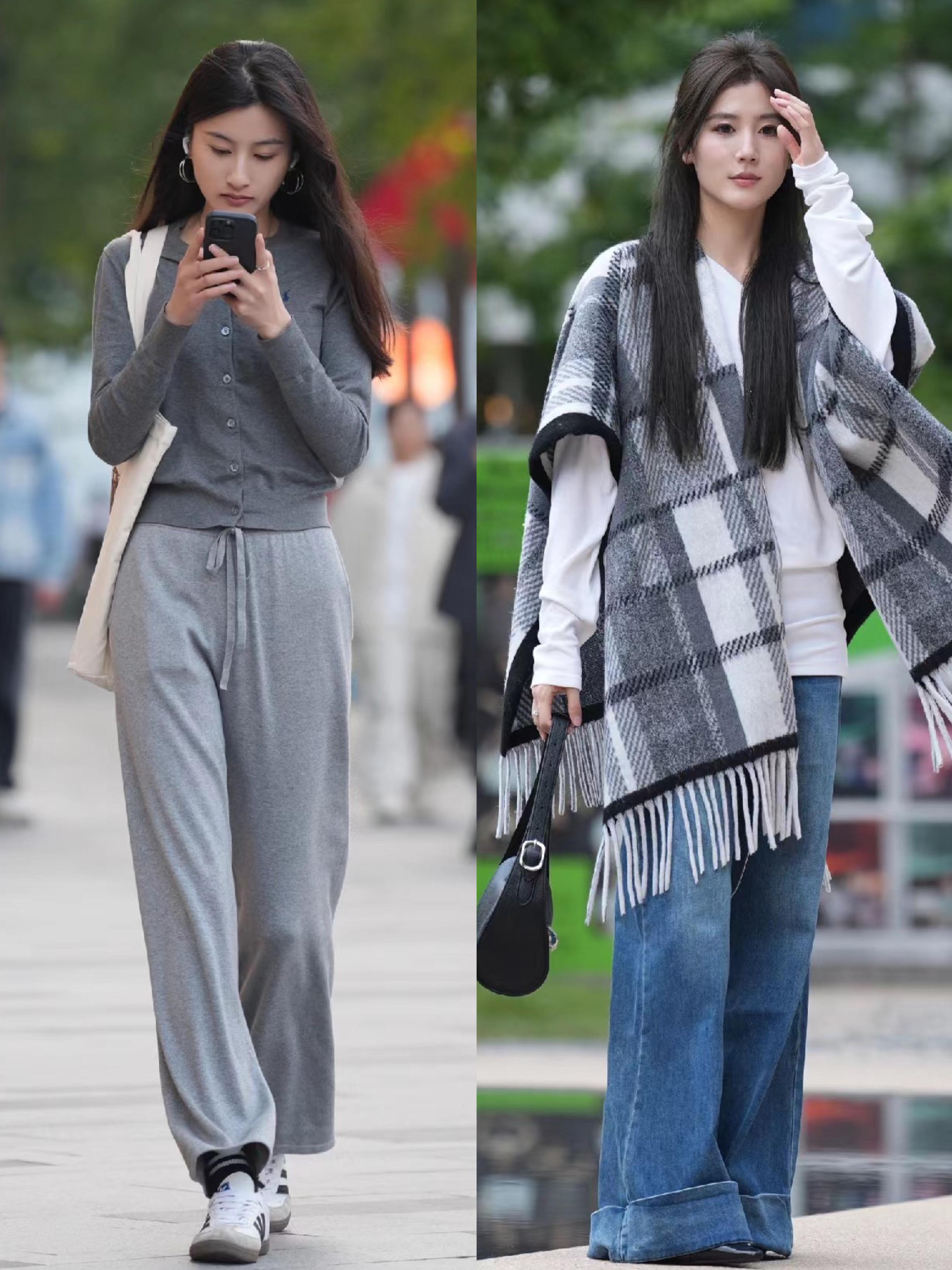 高腰的闊腿褲、直筒褲,穿起來都更利落大氣,是保暖又顯腿長的。尤其是牛仔褲,直筒款式好大方,配格子圍巾秋季氛圍拉滿。