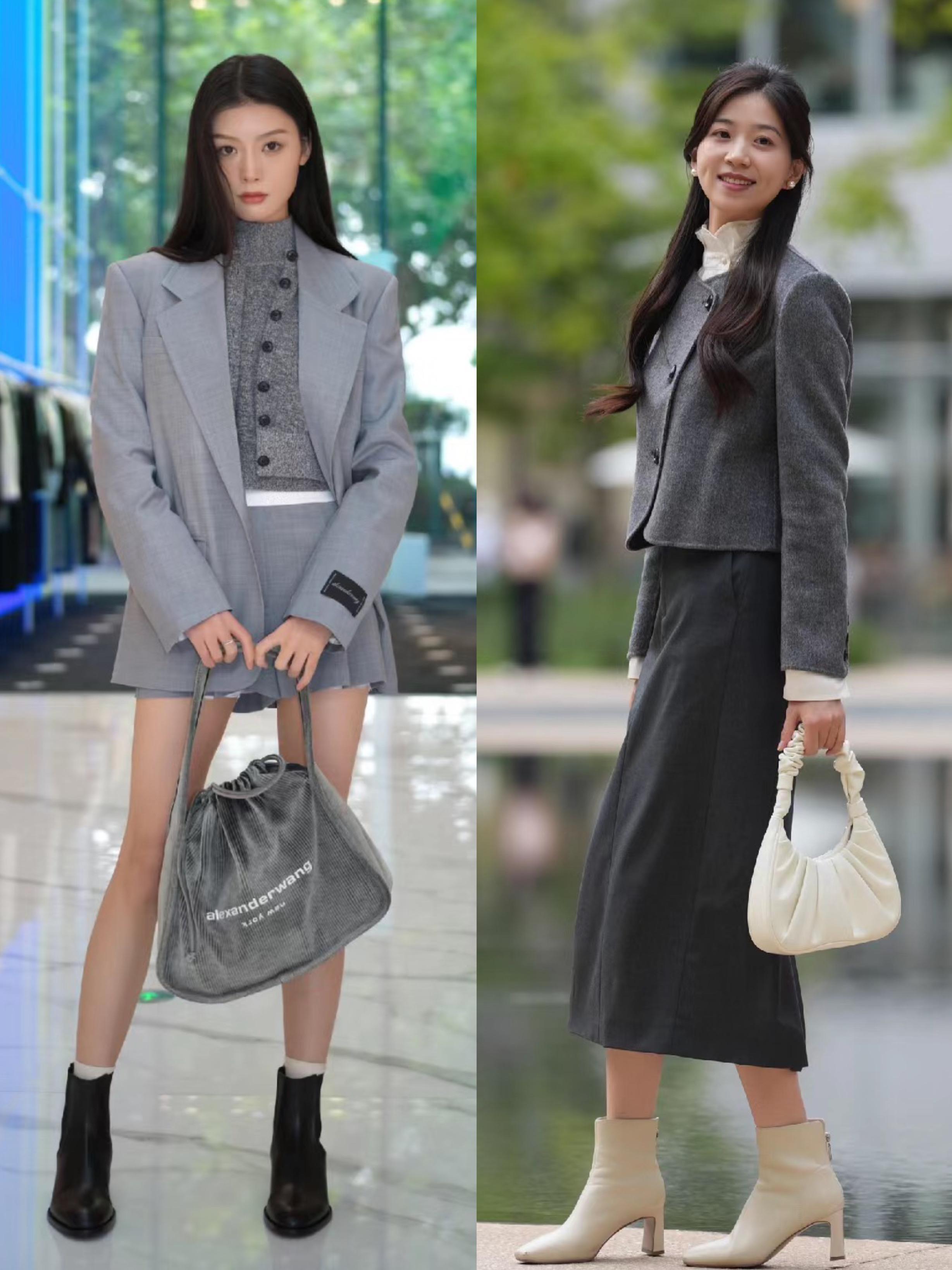 秋天裏的下衣失蹤,真的好容易秀長腿呀。小可愛灰色的西服配一件高腰的超短裙,就有了大長腿的即視感。