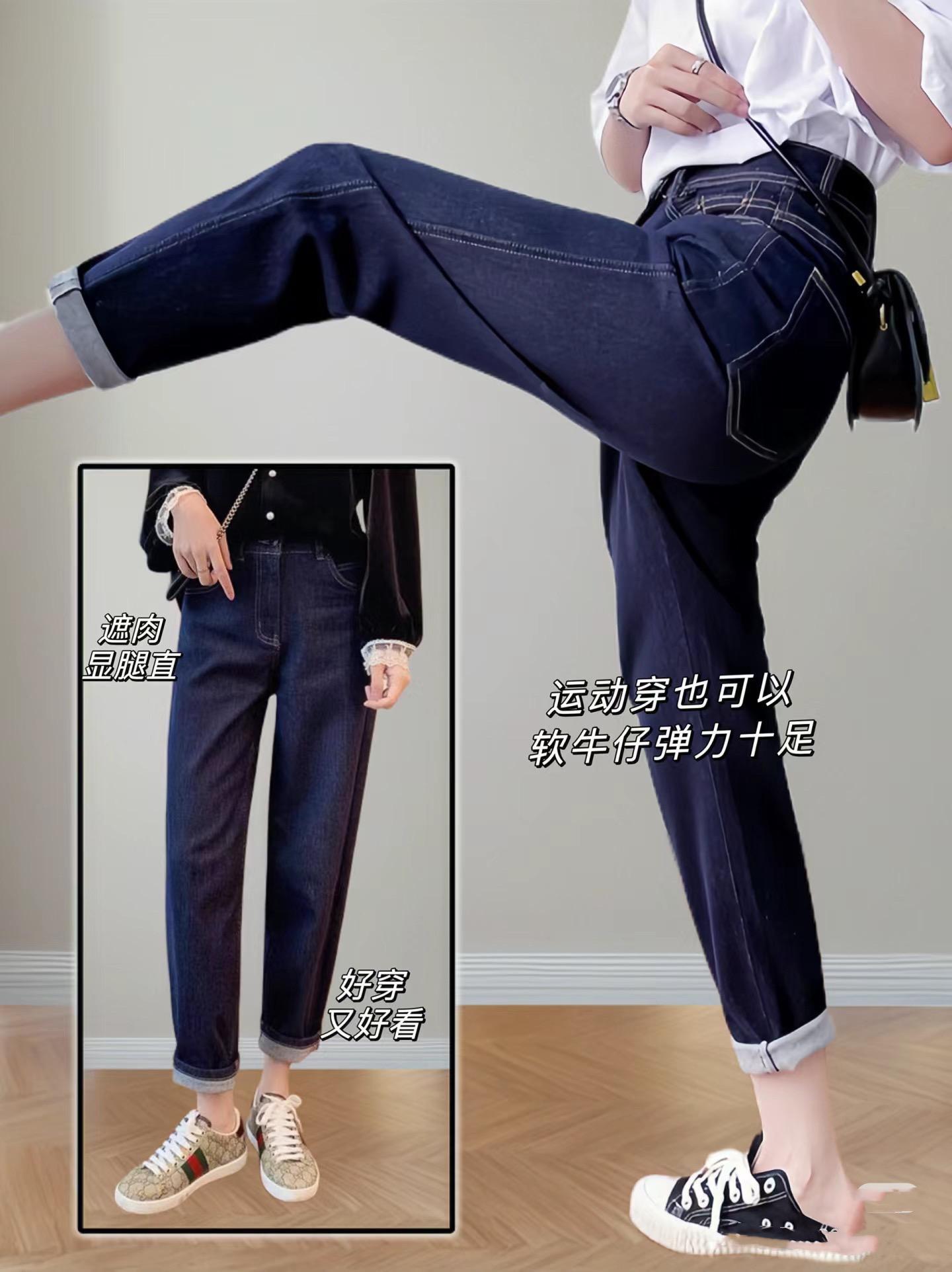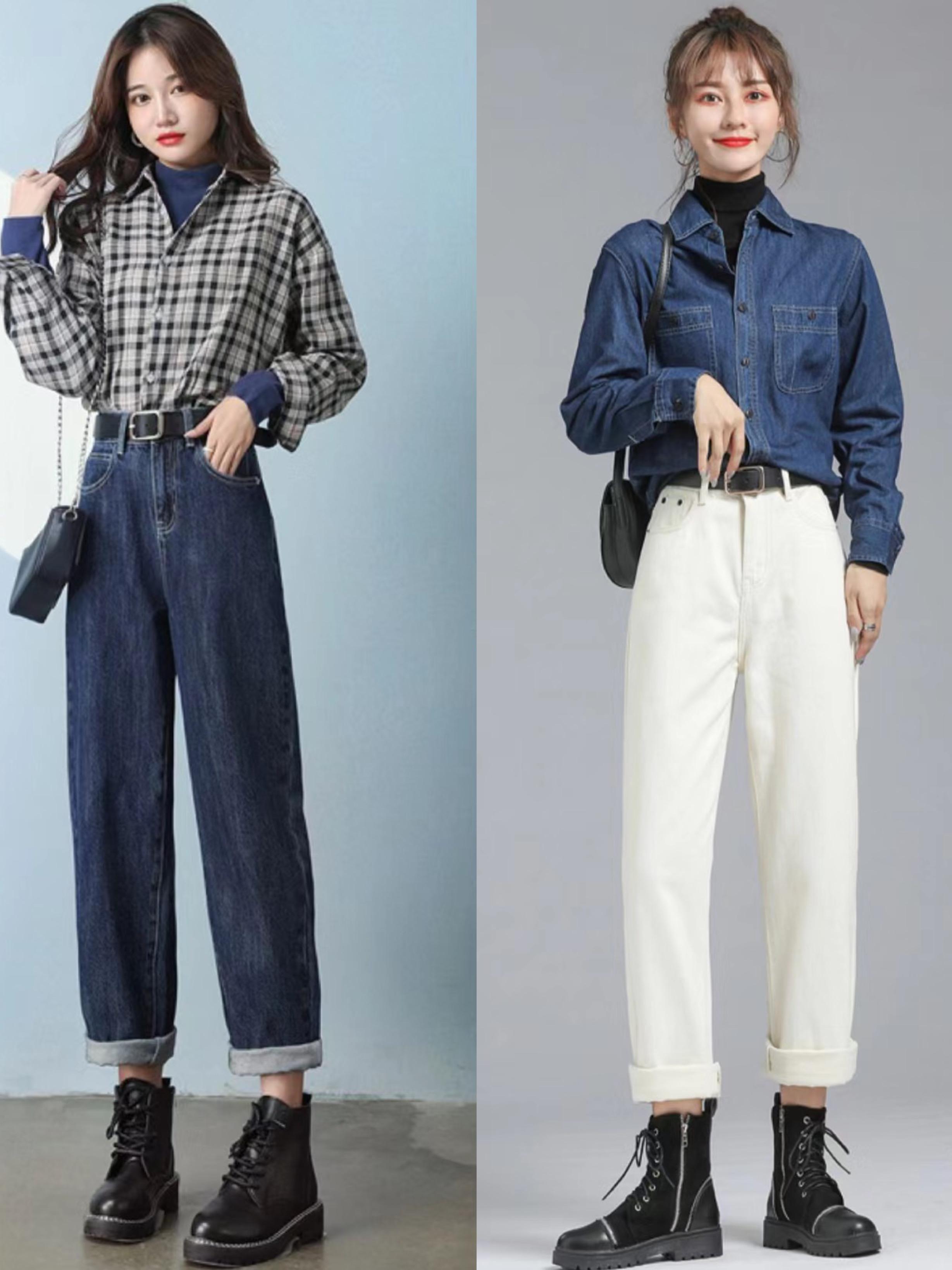 秋天裏的老爹褲,真的是隨時隨地都可以穿。不分場合、不管場景,都可以盡顯自由。像這種帶有彈力的牛仔老爹褲,舒適又百搭。