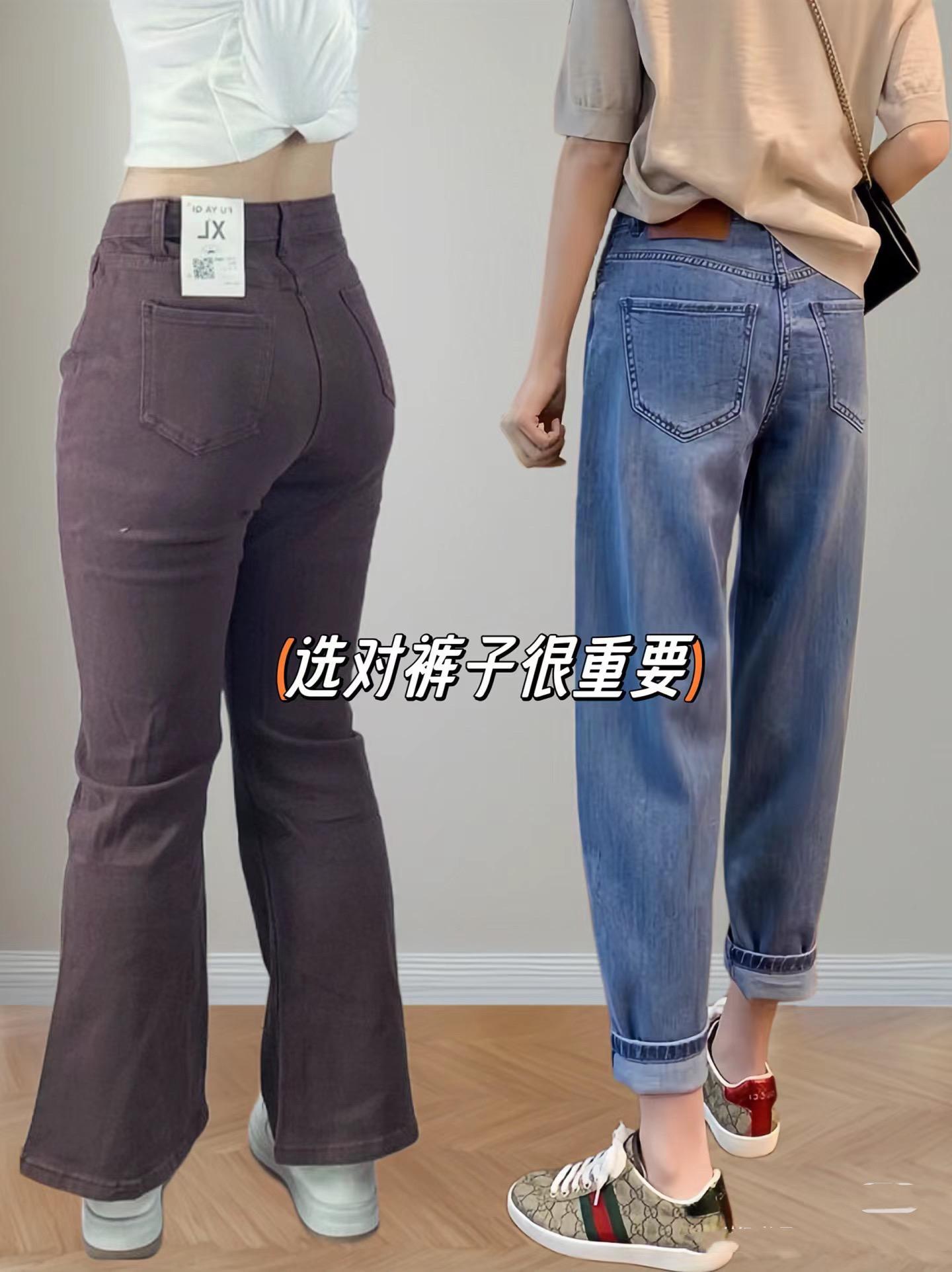 提到老爹褲,我們首先想的都就是利落、顯瘦不拖沓。與上窄下寬的喇叭褲不同,喇叭褲會把胯寬、腿粗的問題暴露無遺。
