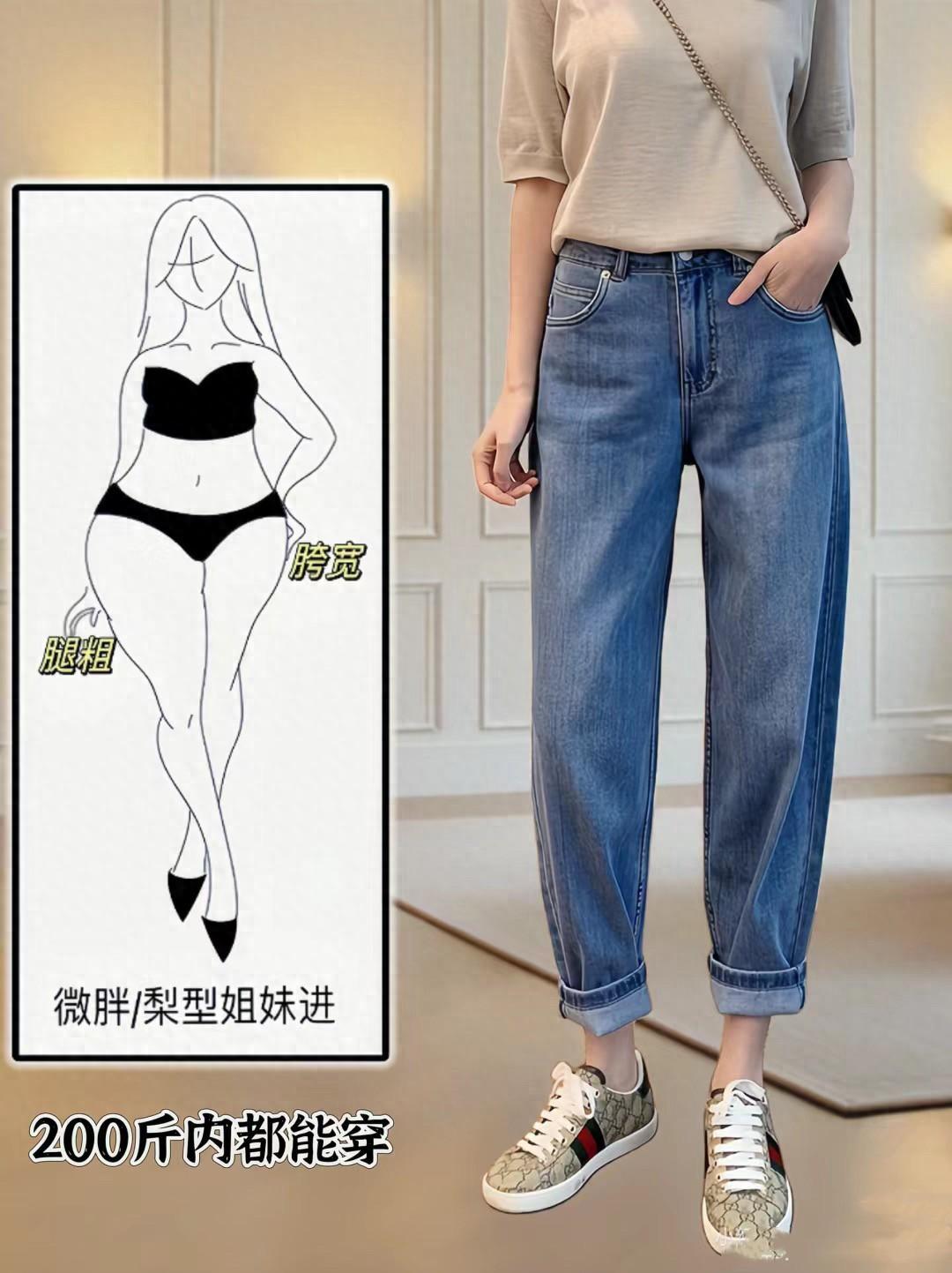 寬鬆一點的老爹褲,配上彈力面料,運動或者上班都能穿。而且這種卷邊的九分牛仔褲、對於小個子也很友好,露出腳踝好顯高。