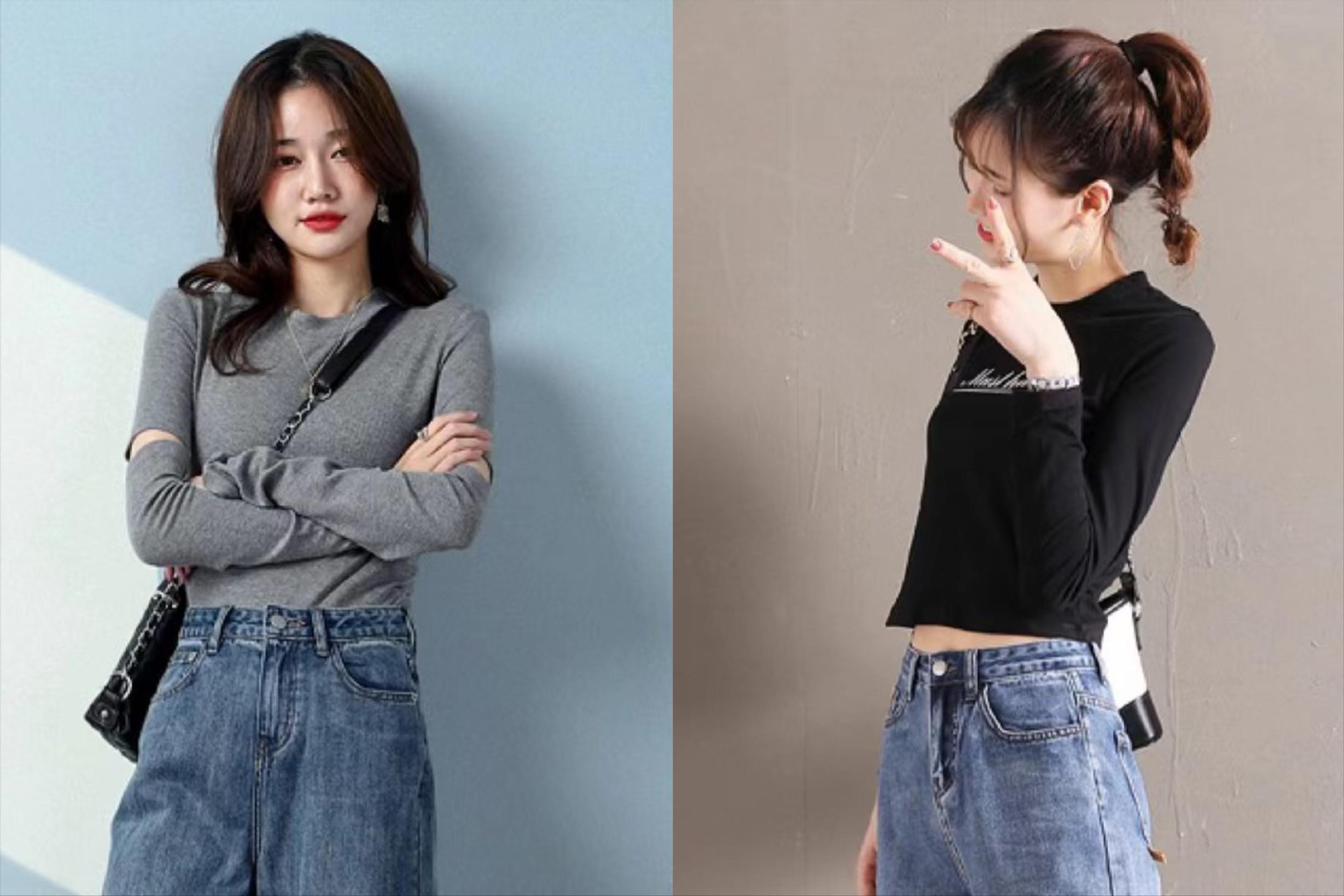 修身一點的短款針織衫,帶有微彈效果、利落又顯瘦。這種短款打底衫,可以單穿、可以內搭,時髦又醒目。