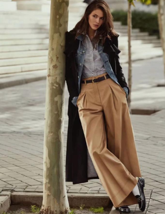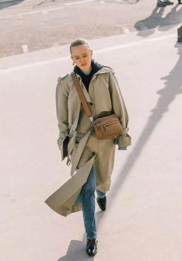 今年秋冬,卡其色風衣依舊是很流行的,內搭上一件藍色襯衫,很不失氣質和魅力,選擇一條藍色牛仔闊腿褲,風衣+闊腿褲,看起來就很瀟灑自信迷人,搭配上一雙黑色樂福鞋,整個穿搭看起來就充滿了魅力和氣質。