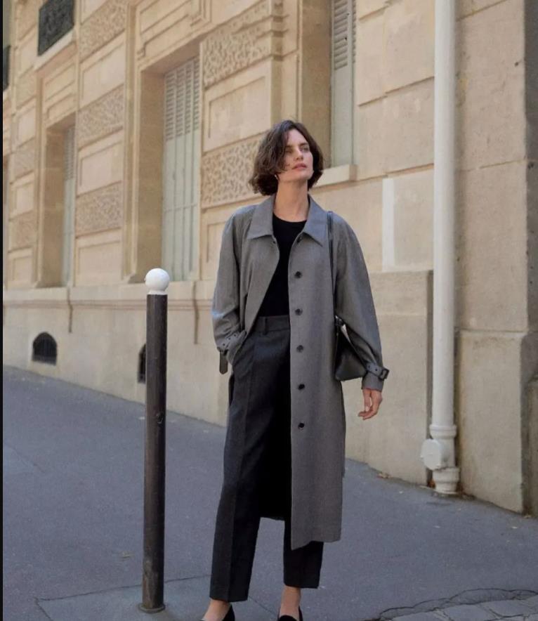 高級灰的風衣,真的沒有誰會拒絕的吧?內搭一件黑色打底,穿出了帥氣和精緻,也將個人的氣質詮釋到極致,再搭配上一條黑色西裝闊腿褲,看起來就非常大氣顯魅力,選擇一雙黑色樂福鞋,率性與女人味都兼顧了。