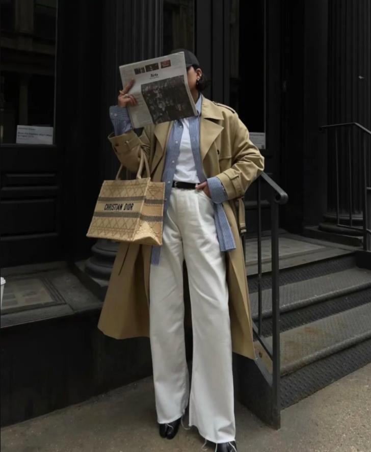 卡其色風衣+黑色打底衫,輕鬆就穿出帥氣和幹練,整個着裝看起來非常氣質,盡顯一種品味和魅力,搭配上一條白色牛仔褲,輕鬆打造出個人氣場,選擇一雙黑色樂福鞋,也多了幾分精緻與魅力,這樣的穿搭看起來就很乾練自信。