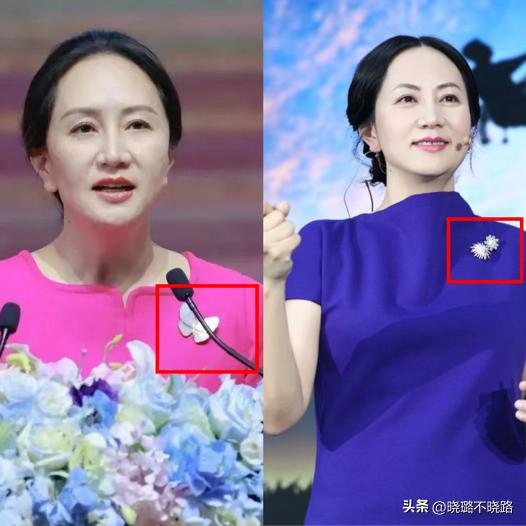 在孟晚舟的配飾選擇上,不難發現胸針是它的基礎標配。她在每個不同的正式場合上,都會給自己的左胸佩戴一枚胸針,整個人的氣質都變得不一樣。衣服基本都是純色素雅的款式,但是有了胸針的點綴後,立馬呈現出富貴名媛的感覺,能散發撲面而來的端莊優雅。