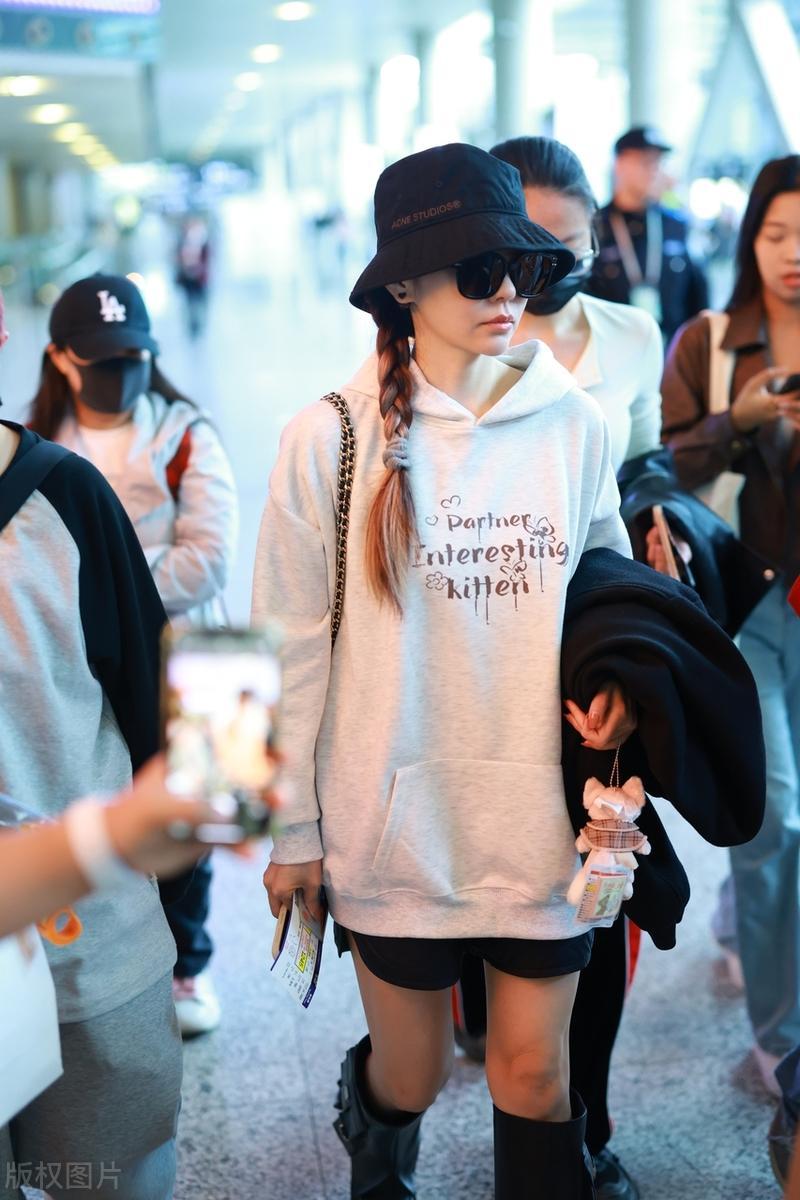 張靚穎好會打扮,穿衛衣配長靴秀“筷子腿”,扎麻花辮美回20歲