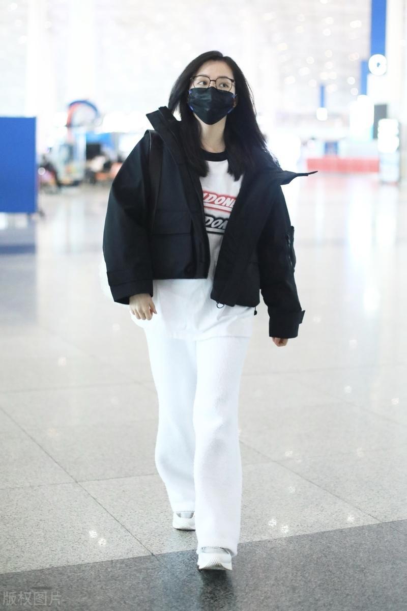 上短下長的穿搭方式,張靚穎也拿捏的非常到位。短款的黑色外套,休閒風的款式隨便一穿就很洋氣。