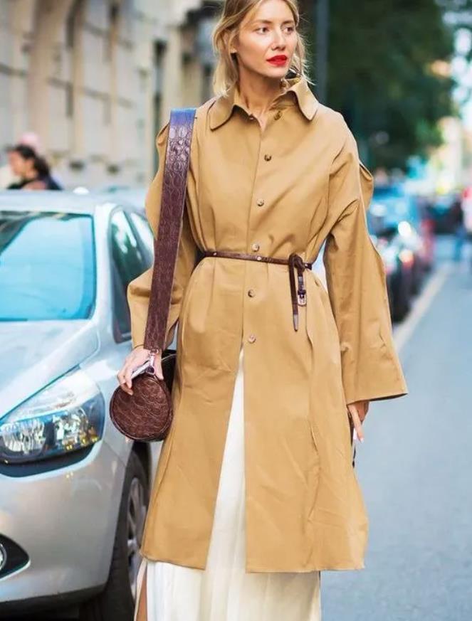 進入秋冬,風衣是必不可少的,如果你不知道選擇什麼顏色的風衣,那麼就選擇卡其色吧,內搭一條白色連衣裙,看似簡單的搭配,實際上卻能給人一種很酷颯的感覺,既保暖又時髦,再搭配一雙高跟鞋,就很好呈現出女性的魅力。