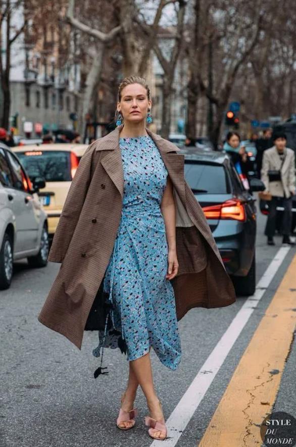 格紋款式的風衣外套,是自帶復古氣息的,這種過膝的長款,就這麼披着穿,很有範也非常顯氣場,內搭一條藍色碎花連衣裙,一簡一繁的組合,輕鬆打造出層次感,這樣的搭配舒適自在又帶着幾分鬆弛和隨性,很顯優雅和氣質,搭配一雙粉色涼鞋,就能展現出屬於自己的風格。