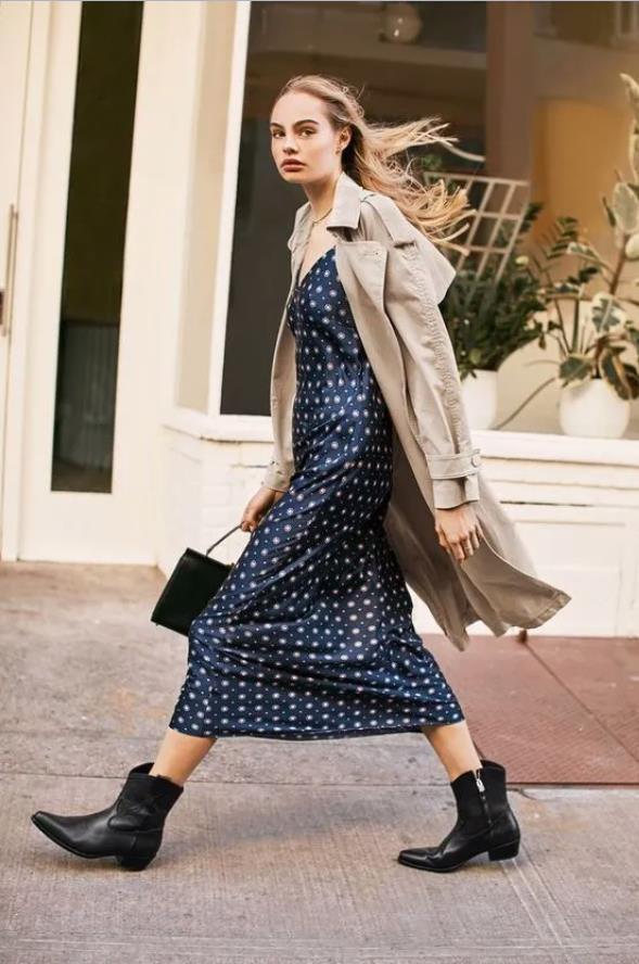 卡其色風衣是永不過時的,對於這種風衣的搭配,實際上並不需要考慮太多,內搭一件藏藍色波點連衣裙,讓你的穿搭多了幾分俏皮和趣味,在任何場合都可以盡情綻放自己,搭配一雙黑色短靴,兼顧了剛毅和高級,更展現出與衆不同的氣質。