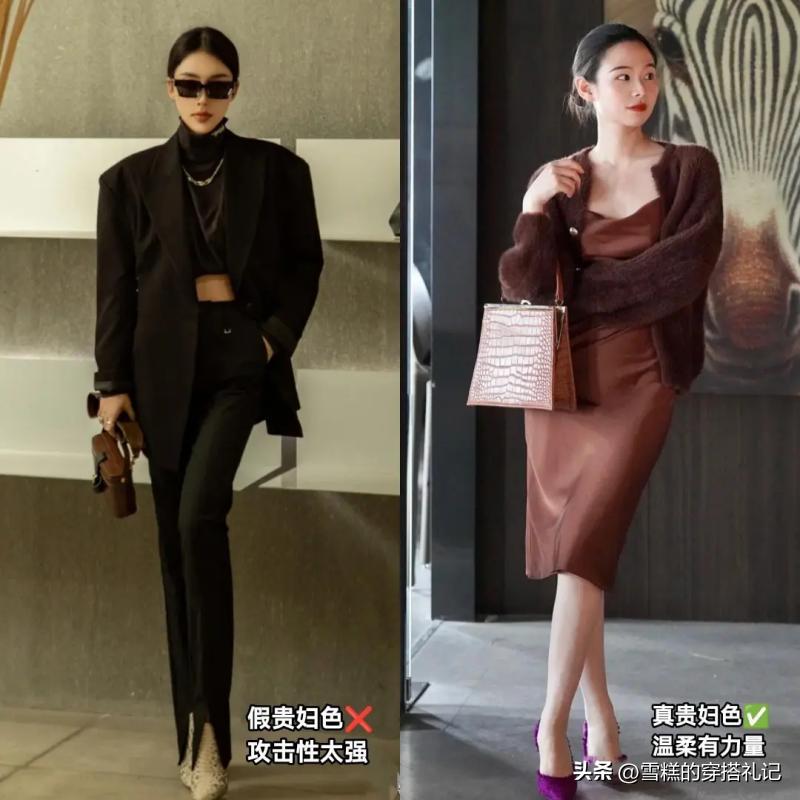 避免以爲基礎款簡單就難以犯錯,看似不踩雷的黑色,實則易讓人着裝顯得乏味單調,儘管它象徵着經典,但缺乏亮點。再者是秋天出場率最高的棕黃色,都可能使整體造型顯得平淡無奇,並帶有壓抑感看起來偏向非常顯老。