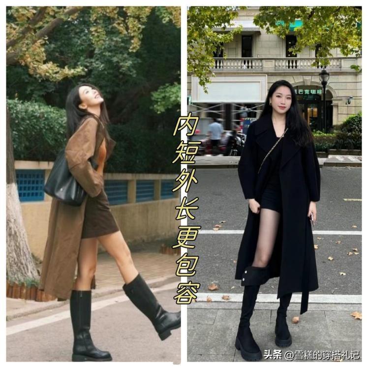 秋冬季節總是少不了長款外套的身影,挑選一件剪裁利落的外套可以幫助我們的造型加分不少。將長款外套與短款下裝搭配在一起,簡直是“王炸”組合。不僅可以修飾我們的臀胯部位,同時還能增強造型的時髦感。再與長筒靴結合,簡直讓人無法將目光從我們身上移開,非常具有魅力氣息。