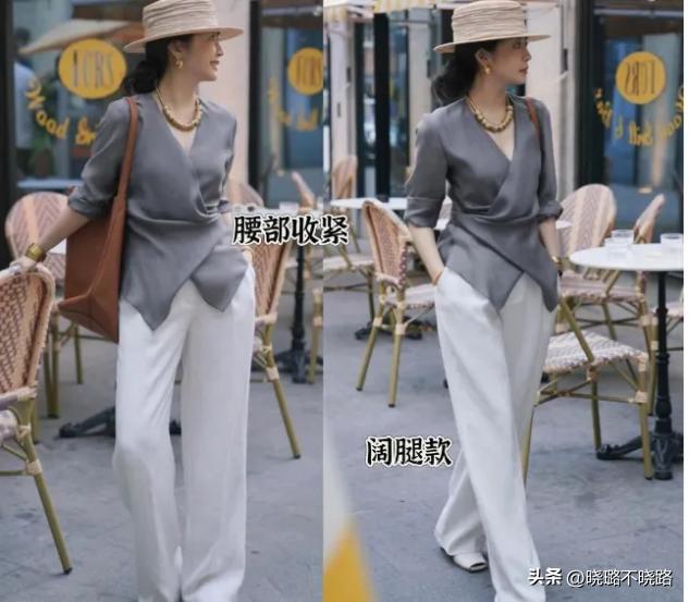 聰明的三木會選用墊肩款式的上衣或者是闊腿版型的褲子,來做好這兩個部分位置的加寬,這樣寬與窄的對比,在視覺上可以拉扯到極致,那麼一眼看上去,你的腰線線條就非常加分。