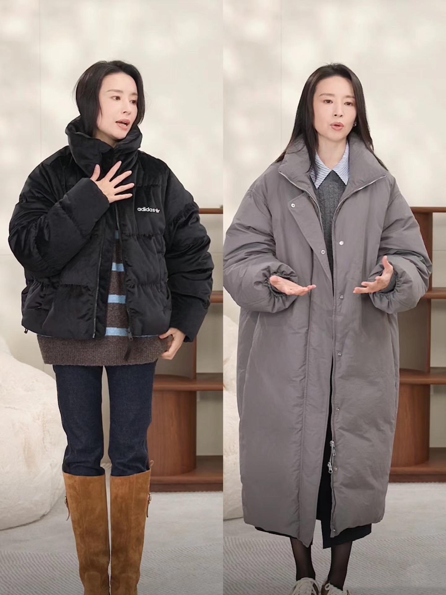 天冷的時候,寬鬆的棉服、羽絨服,還是應該準備起來的。寬鬆度黑色棉服、短款的版型更利落,也更輕便。