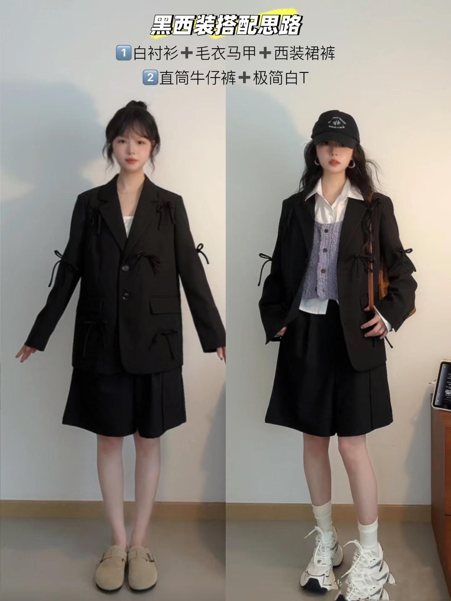 黑西裝可優雅女神、也可以酷颯帥氣,還可以表現出活力十足的美式學院風。當我們給自己的穿搭換一種思路的時候,就發現了更多的搭配方式。