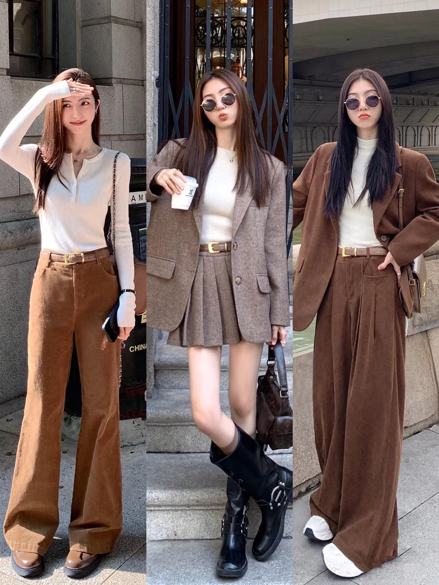 秋天裏的美拉德穿搭,自帶溫暖氛圍。棕色的西服、直筒褲、甚至棉衣外套,相對於其他的顏色都更溫暖一些。