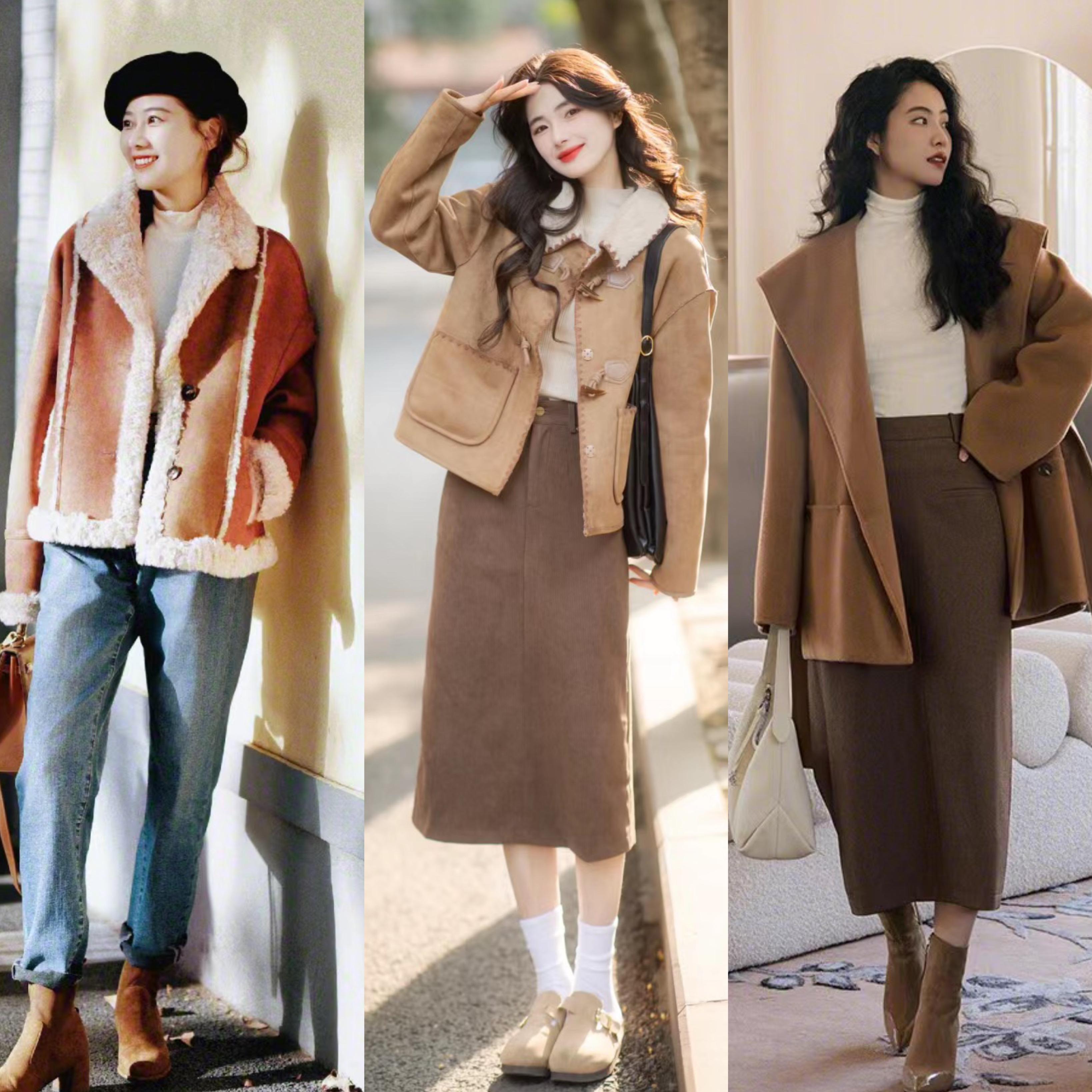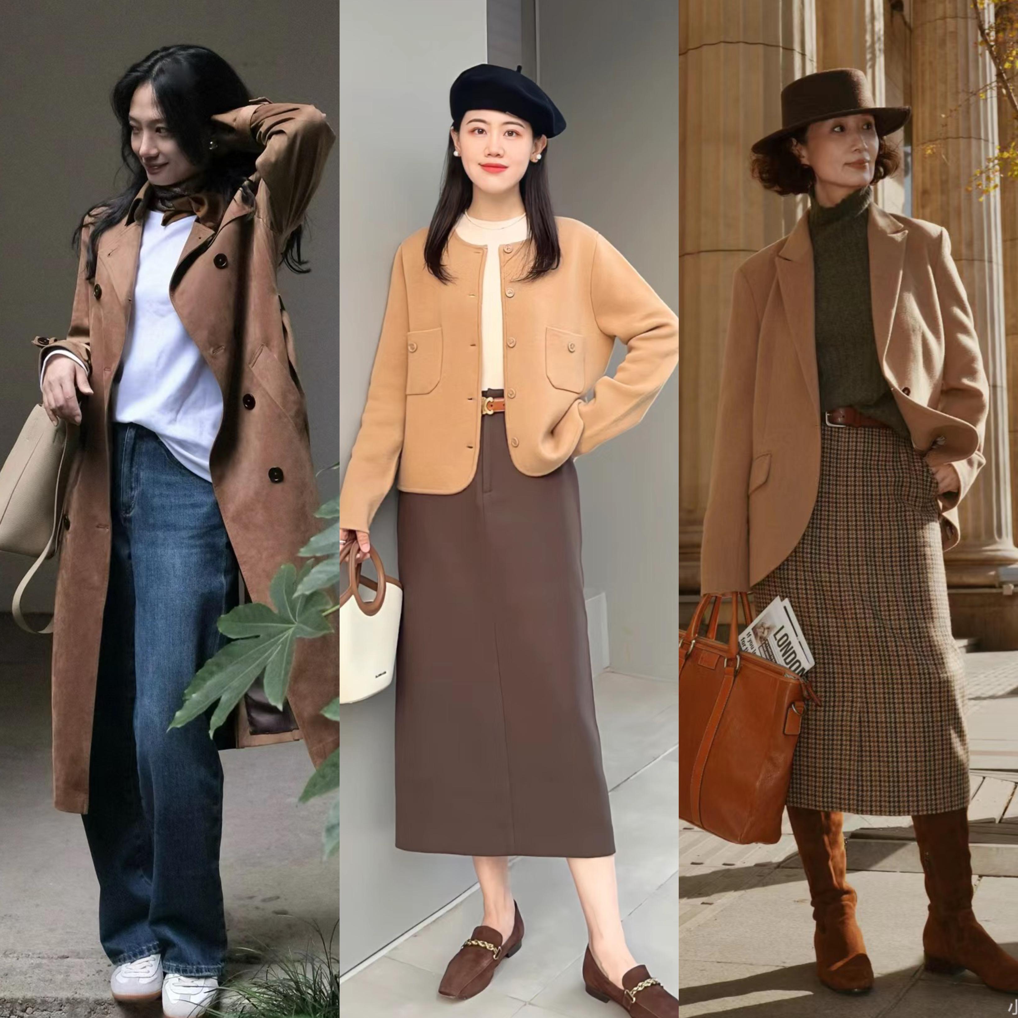 美拉德風格的穿搭,是一種更溫暖、更和煦的穿着方式。大面積的棕色系、把秋日溫暖氛圍烘托出來。