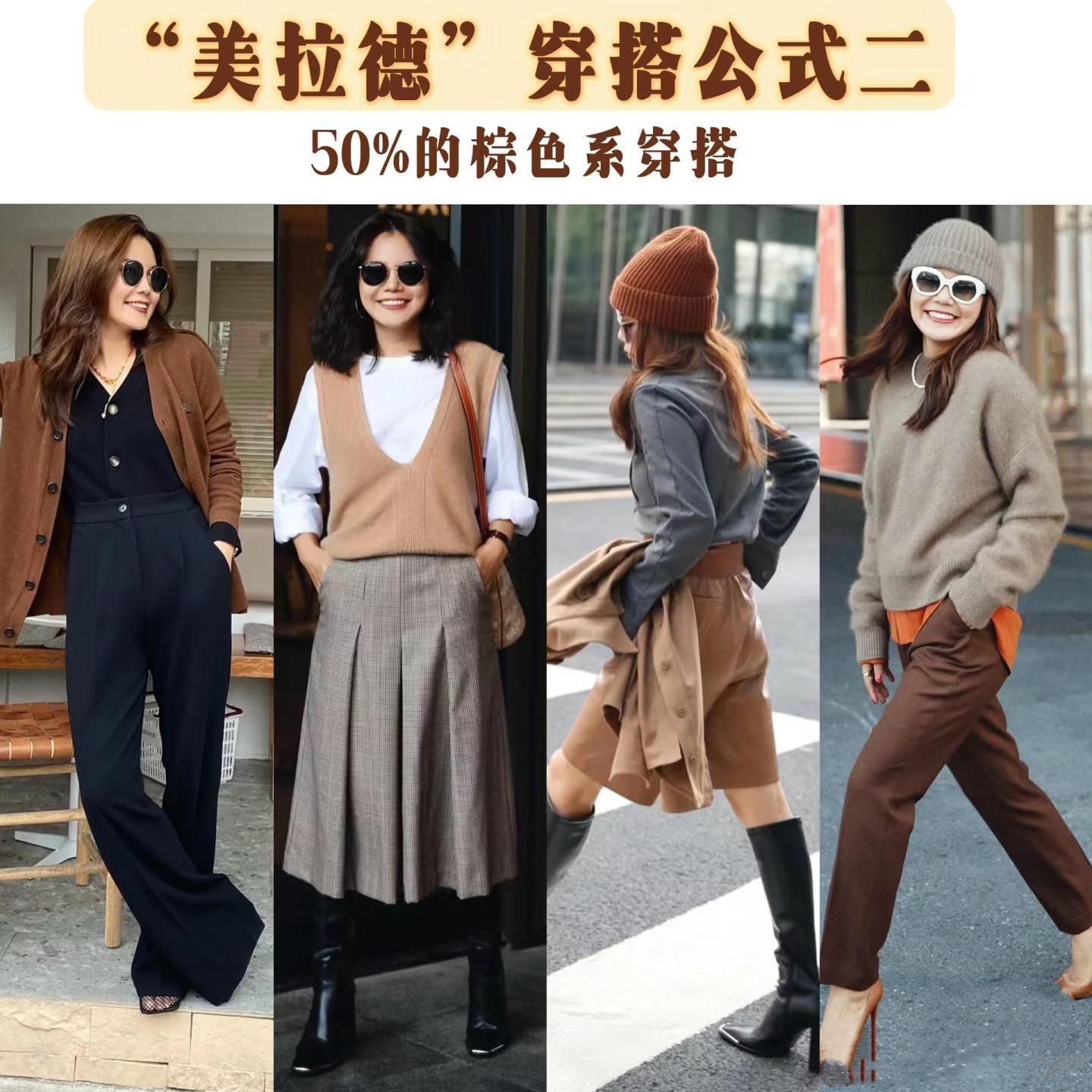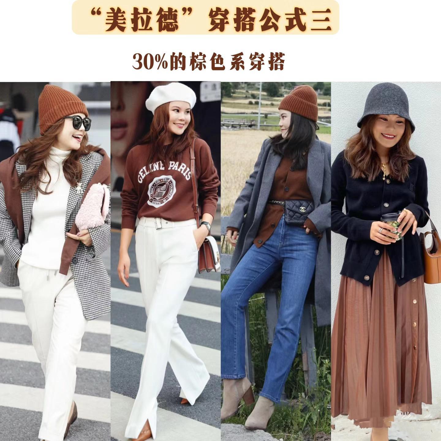 30%的棕色系搭配,既有秋季氛圍、又不會太過濃郁。我們可以有自己的穿衣風格,休閒風、溫柔風、通勤風、街頭風。
