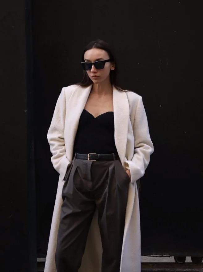 這種德系的穿搭風格,其精髓便是多以純色系單品爲主,像黑白灰、大地色就是最關鍵的色調,除此之外,德系的風格打扮,也很注重線條和剪裁。