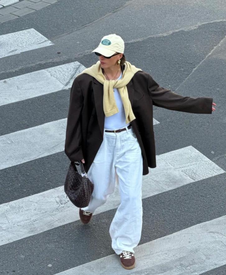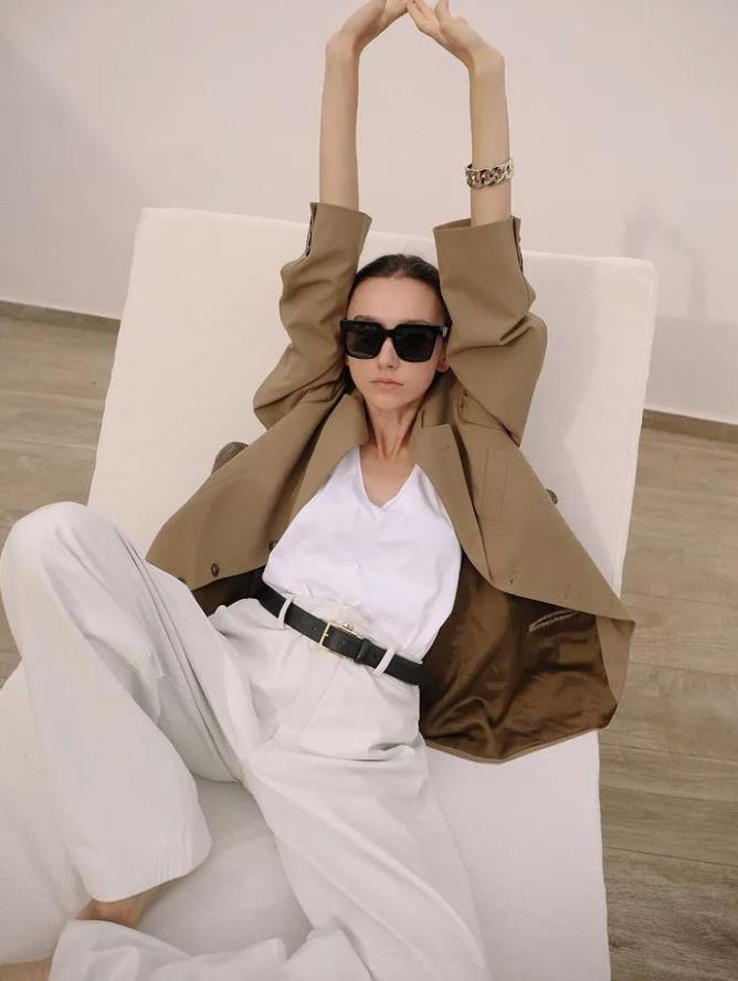 西裝外套也是打造德系風格的常用款,基礎款的設計,往往是能輕鬆穿出高級和休閒感的,搭配白色t恤和淺色的休閒西裝褲,這樣的穿搭非常值得職場的女性學習,沒有過分的顯呆板和嚴謹,反而多了幾分舒適和愜意。