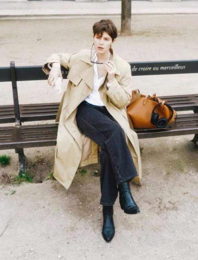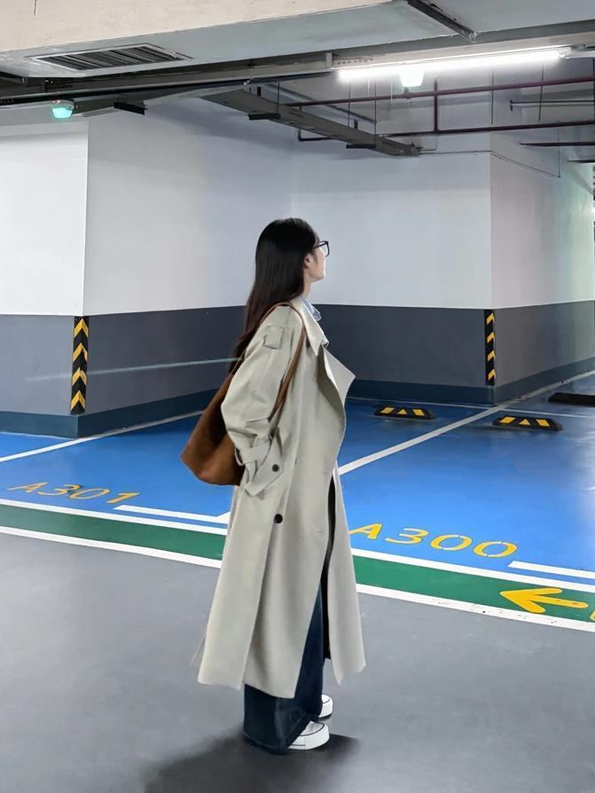155小個子女人也合適的着裝,秋天就是少不了一件風衣,在選擇長度上,一般建議到過膝的長度最佳,這樣敞開來穿又營造出走路帶風的既視感,又不會壓低個子,搭配一條牛仔闊腿褲,鞋子選擇了一雙白色帆布鞋,慵懶又隨性。