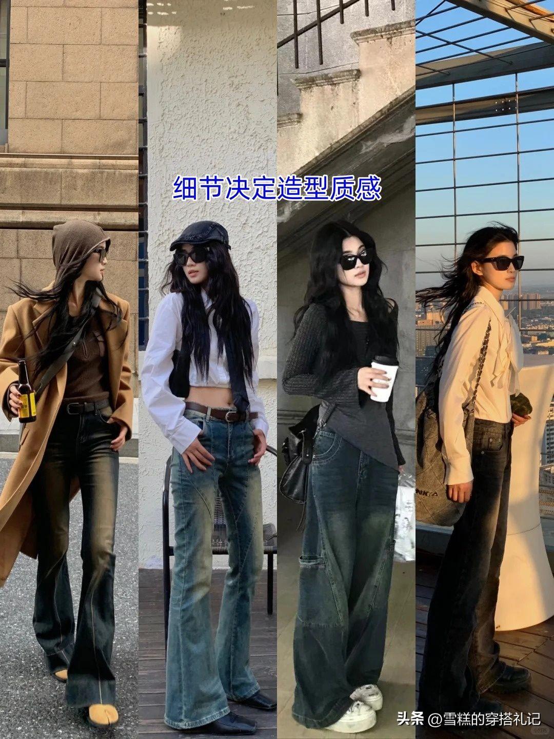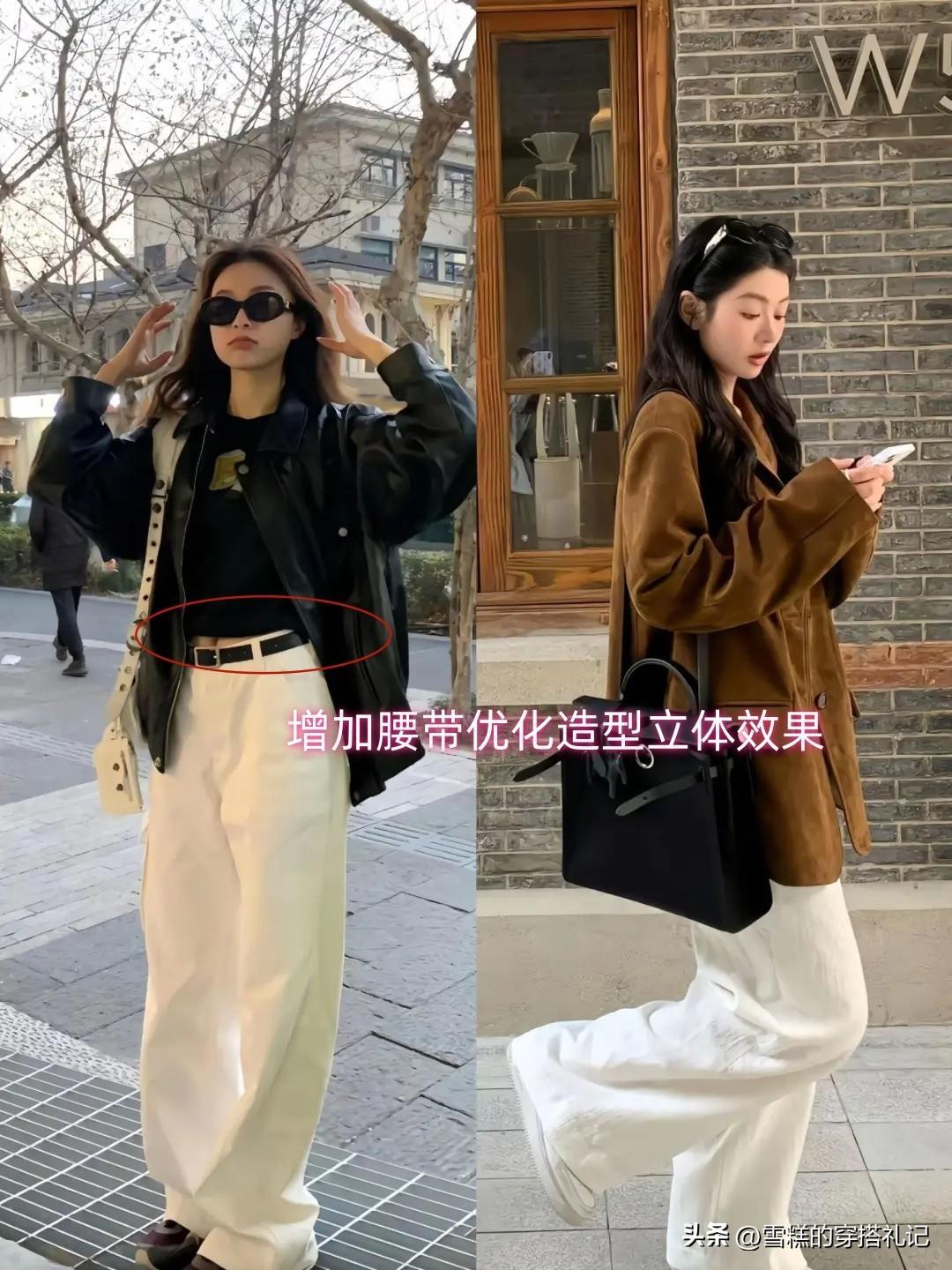 褲裝的搭配過程裏,咱們可以配合上衣增加或減少一些細節,這種是區別於額外增加包包、腰鏈等元素的方式,更多時候是隻在褲子上調整面料及厚度,就能改變整體的質感。