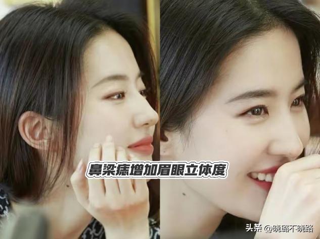 劉亦菲是明顯的鼻樑痣,長在鼻子尖端或者是鼻樑側邊的痣,可以形成一個天然的陰影區域,不僅是把視線集中到了面部中庭的部位,同時也讓你的鼻樑位置顯得更加立體,存在感更強。