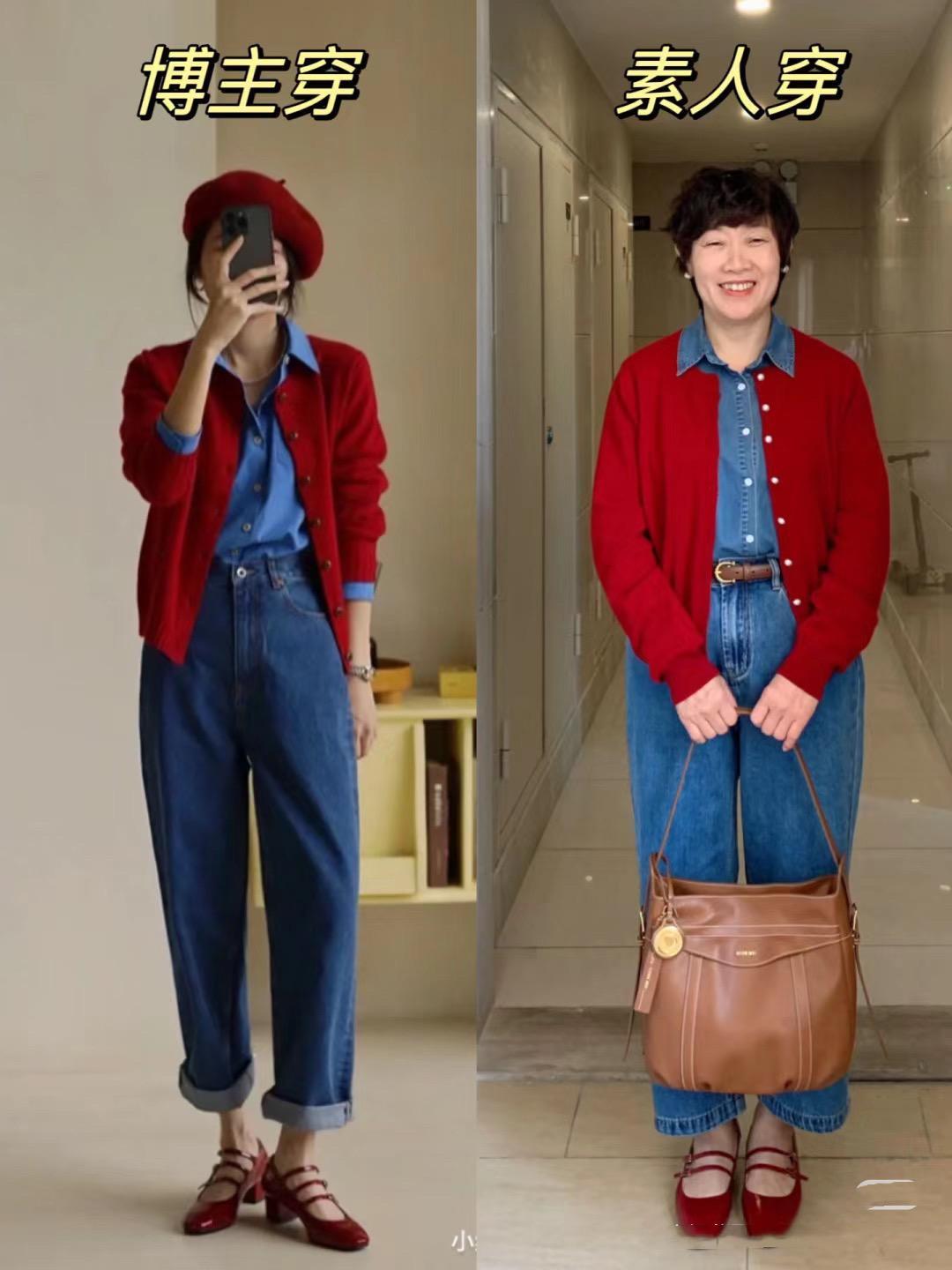 直到我看了她的多篇筆記才明白,這位阿姨哪裏是沒有審美、她是在自謙呀。說是照搬年輕博主的穿搭,但是搬來的每一套都很合適,這就說明她眼光敏銳、時尚品味在線。