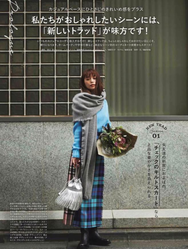 充滿復古風的半身長裙,搭配一雙帥氣的短靴,這樣的組合是沒有一點問題的,很好平衡了整個造型,也能讓你的穿着看起來更高雅。上衣選擇一件低飽和度的藍色毛衣,這個色調真的很襯膚色啊,圍在脖子上的圍巾,既增添了一絲溫暖,又豐富了整個造型。