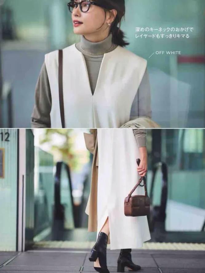 這個不算太冷的秋季,長裙配短靴纔是最合適的,白色的長裙,再配上一雙短靴,沒有刻意去展露肌膚,反而是給人一種隨性自然的感覺,帶點恰到好處的小性感,上衣是毛衣+馬甲,疊穿很顯層次又時髦。
