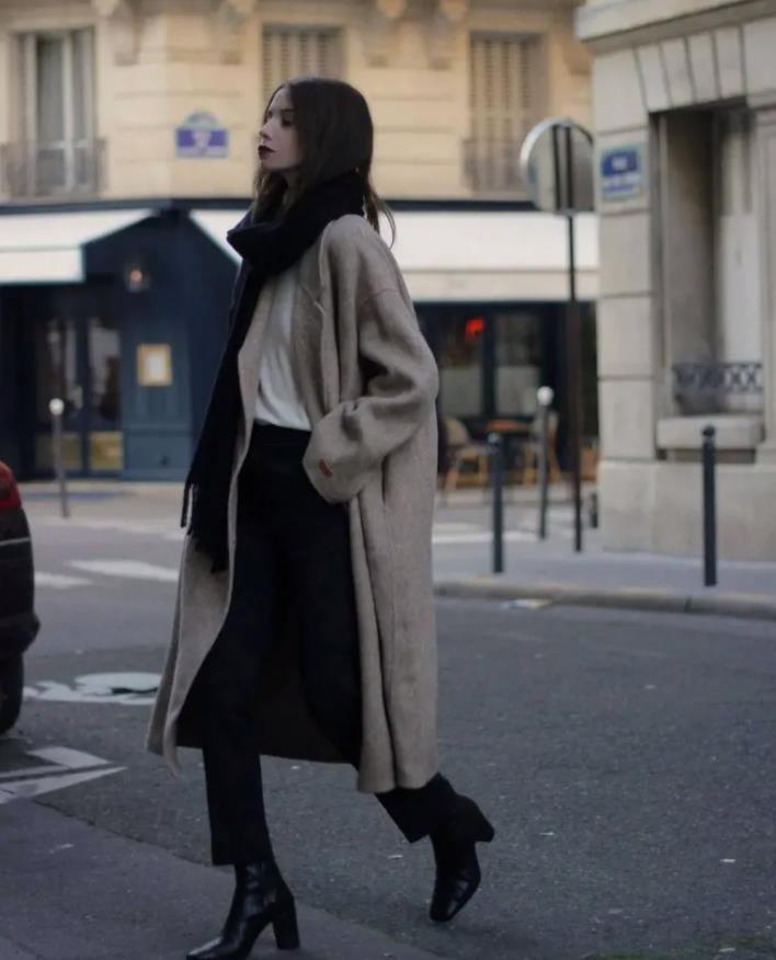 今年秋冬,一定要爲自己入手一件雙面大衣,很顯高級的灰色,也不挑膚色,內搭一件白色t恤,南方的秋冬這麼穿基本足夠了,大衣就那樣敞開來穿,很好展現出一種自信和獨立,搭配一條黑色牛仔褲,輕鬆展現出女人味,腳上一雙黑色短靴,平衡了你整個身材比例,讓你展現出氣場。