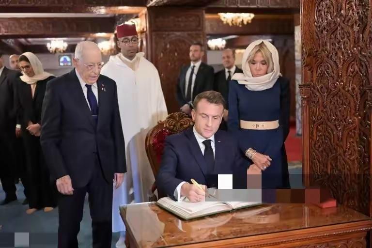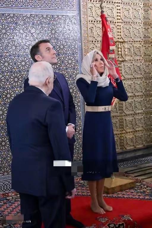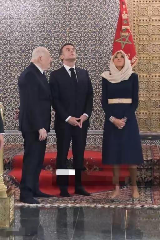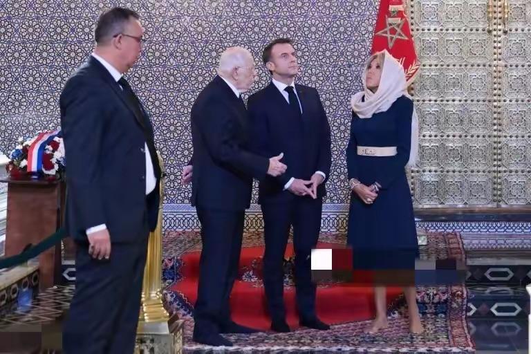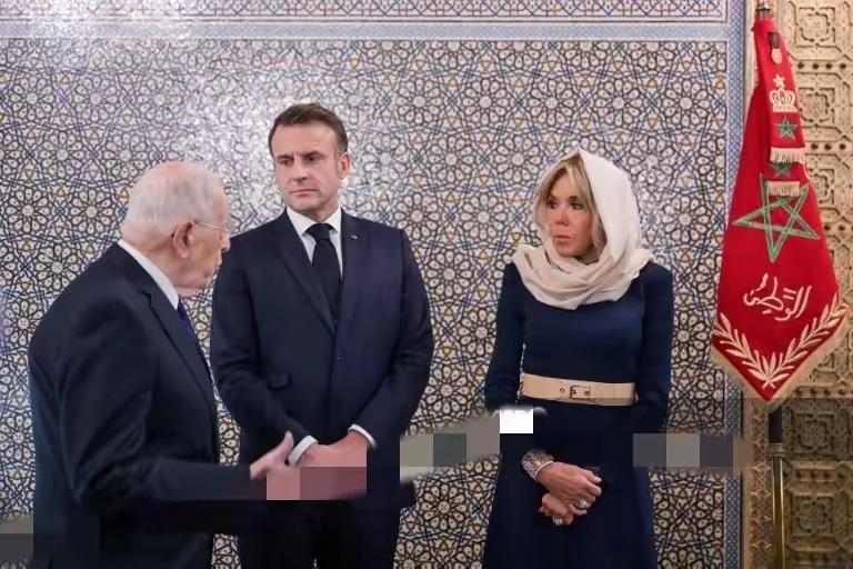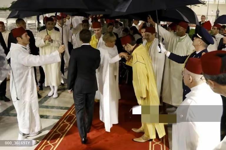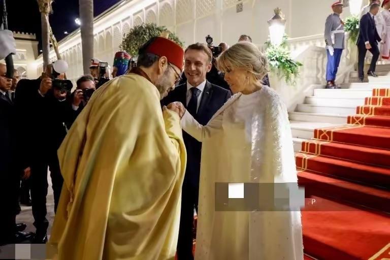 馬克龍夫婦訪問摩洛哥,國王獻吻手禮,布里吉特光腳丫裹頭巾好美