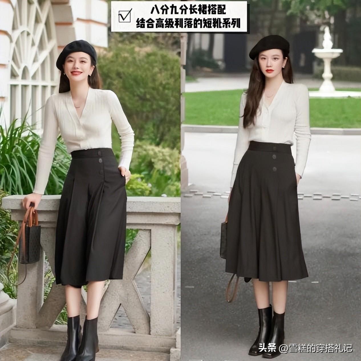 一到了秋冬季節的時候,像長裙或者長褲這樣的搭配完全可以結合經典的短靴,它本身就是二分的比例長度,可以讓我們整個下半身分割出來極爲具有優勢的28比例狀態,真的很顯腿長呢。