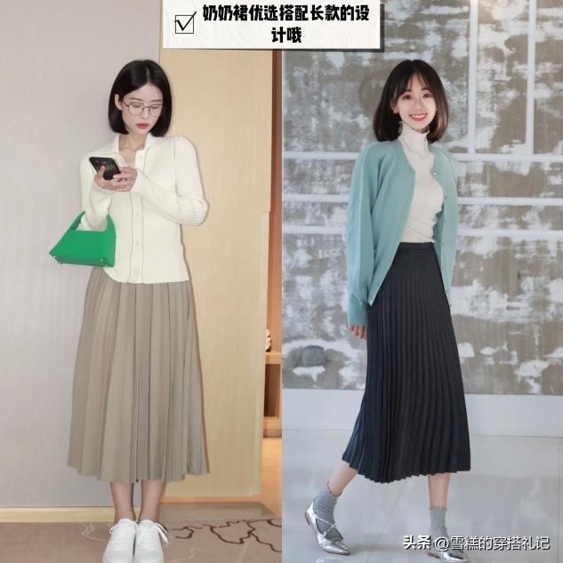 在最初入手搭配奶奶裙的時候就建議各位女性可以將長款的版型作爲標準性入手搭配,尤其是在膝蓋以下的長度露出來一小截小腿以及腳踝的部位非常的穩定,又得體。這對於中年階段的女性而言也是極好的選擇,並且長款的設計可以將整個下半身的不足都遮掩。