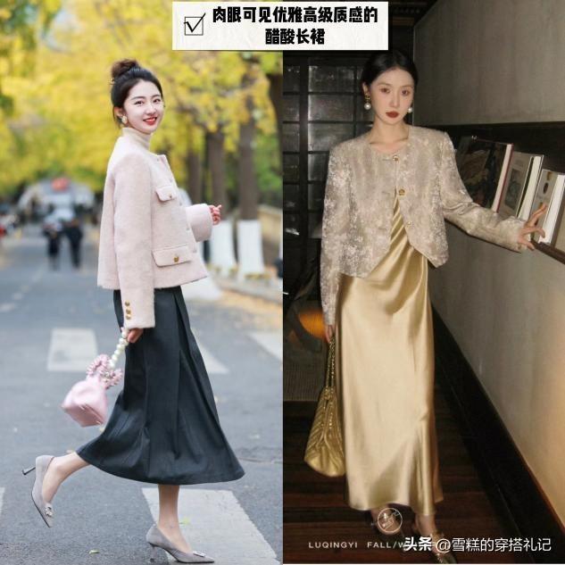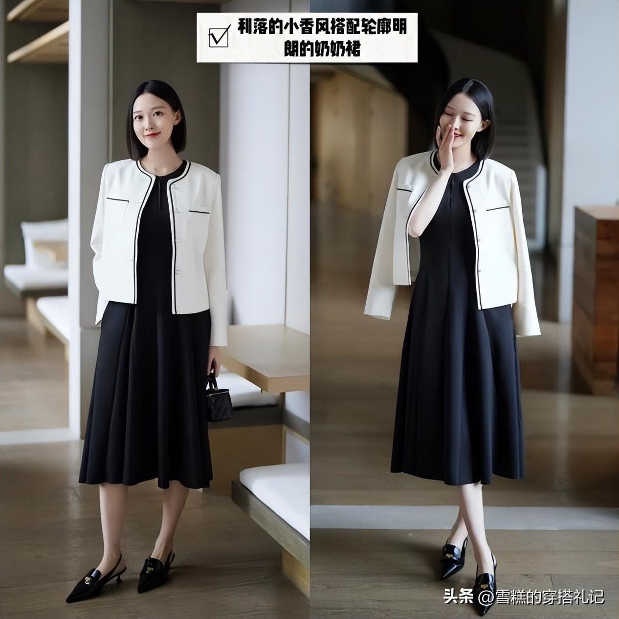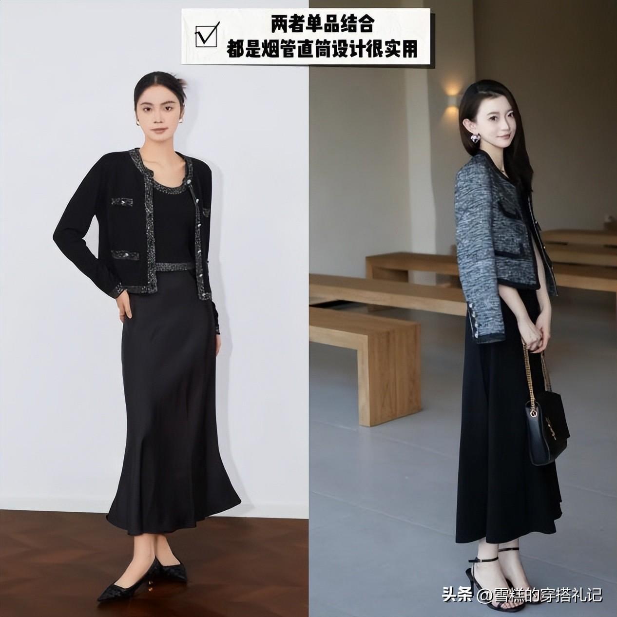 小香風和長款的煙管直筒型奶奶裙的組合搭配,就非常的適用於職場穿搭當中這樣的組合在視覺上而言能夠很好的強調利落和高級的屬性感,尤其是對於身材狀態不好看或者是小嘟嘟較多的女性,這樣的搭配真的很適用於你的日常穿搭,色調也可以將較暗的顏色優選。