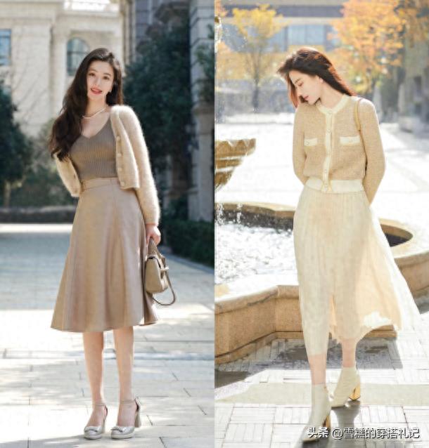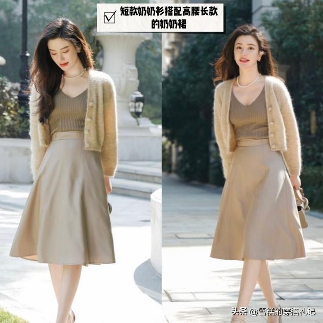 秋衫和奶奶裙這兩款單品,它本身就是趨向於比較溫柔又優雅的單品系列,所以在組合起來的時候最好能夠讓這樣的氣質狀態多多的營造,建議大家在色系當中還是要將經典的大地色或者是直接搭配淺色調的組合呢!