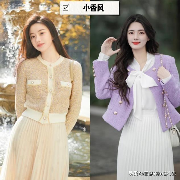 第2款秋衫的搭配就推薦各位女性可以將小香風的系列作爲首選,這一款單品,它本身就是簡約大氣,而且輪廓感非常明朗,穿起來的時候利落高級非常的襯托我們本身的氣質狀態,在秋冬季節也非常適合與裙裝來進行組合,整體不管是身形還是氣質都很穩定。
