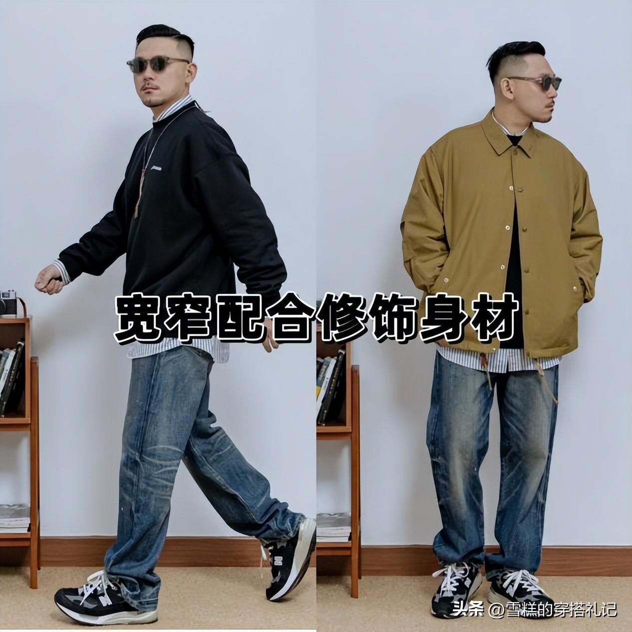 爲了解決中年發福的問題,更加建議大家藉助上短下長的組合來突出比例感。比如剛好蓋住臀部的寬鬆襯衫、大板型衛衣等等,配上能夠蓋住鞋面的長褲,營造出高挑的二七比例,達到平地起高樓的效果。尤其身高在170以下的男性,更需要藉助穿搭來優化比例。如果稍微長一些的上衣,也可以將它的衣襬塞進褲腰裏,一樣能夠穿出大長腿。