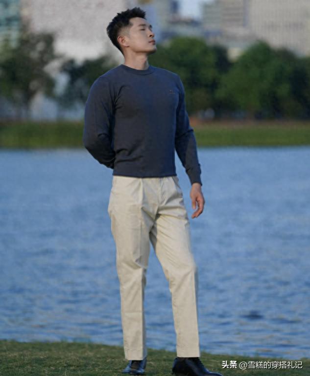 建議大家根據自己的身材特點進行挑選,比如上半身比較臃腫的男性,可以嘗試圓領或者翻領的襯衫以及衛衣,用頸部的露膚來打造纖細感。胯寬臀肥的男性儘量避開低腰低檔線的褲子,換成高腰的九分褲,反而更顯高挑。注意,只有當服裝的版型與身材相互匹配時,才能夠穿出揚長避短的效果。