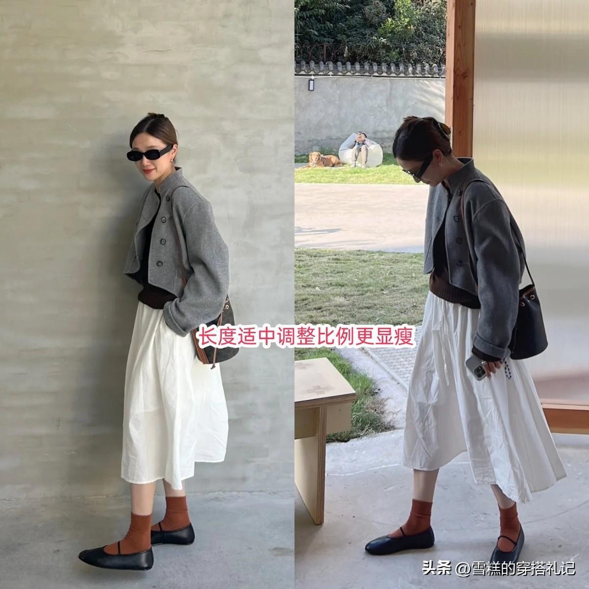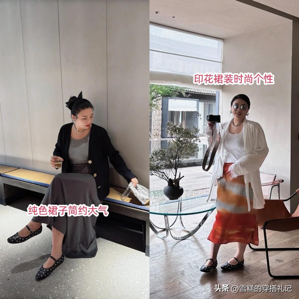 三、“裙子+奶奶鞋”搭配系列,加上技巧即可隨時隨地展現知性女人味